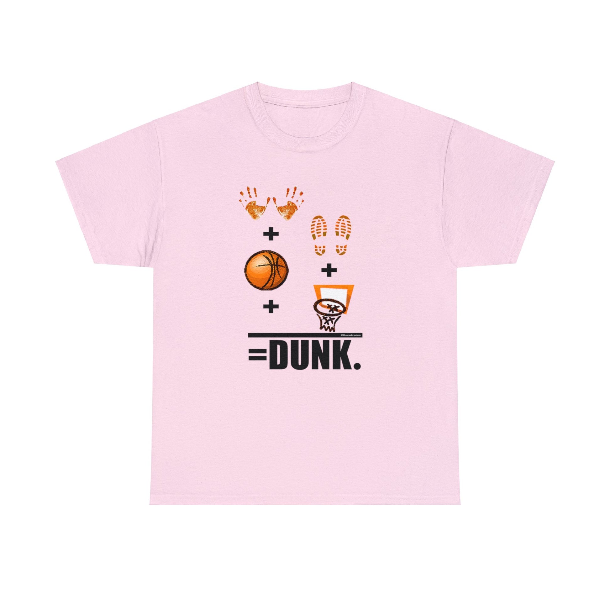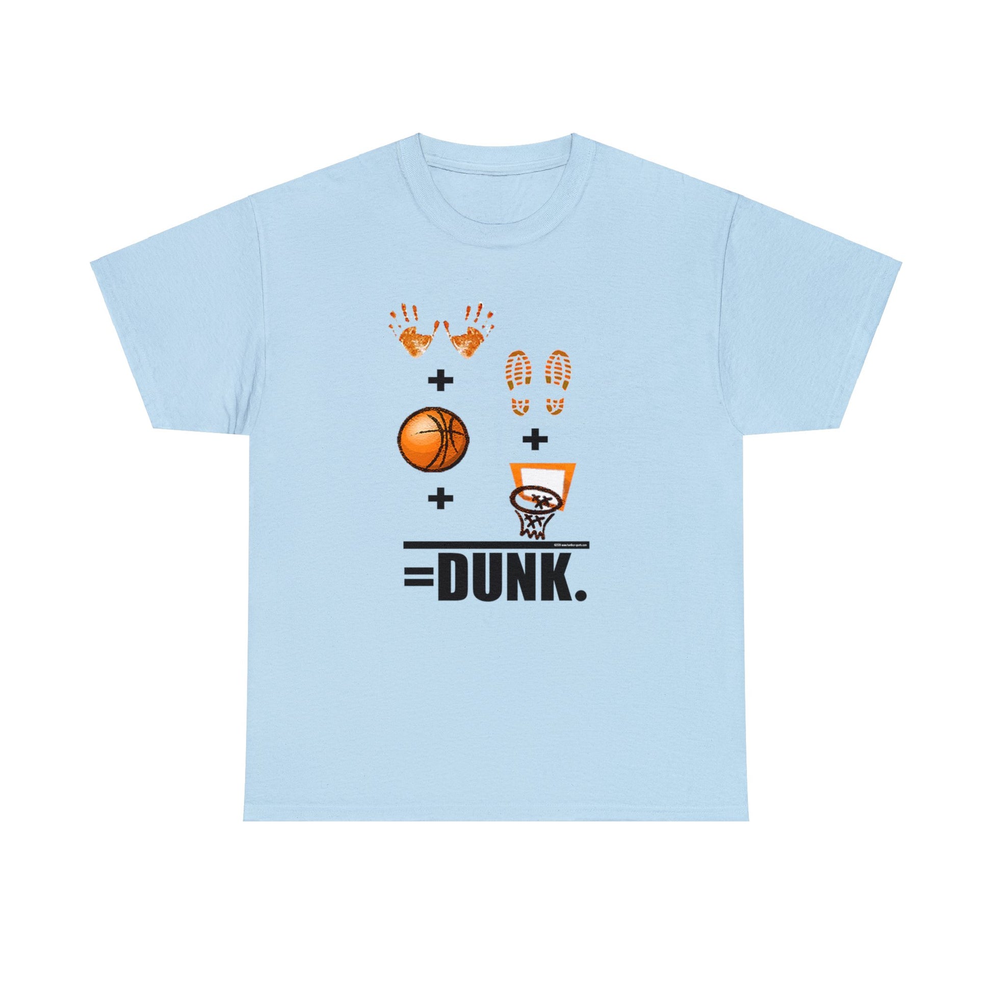 What is the equation for a dunk? Hands + Feet + Basketball + Net = Dunk. It all adds up - a fun t-shirt that will solve the equation of what to get the basketball player on your shopping list. The unisex heavy cotton tee is the basic staple of any wardrobe. It is the foundation upon which casual fashion grows. All it needs is a personalized design to elevate things to profitability.