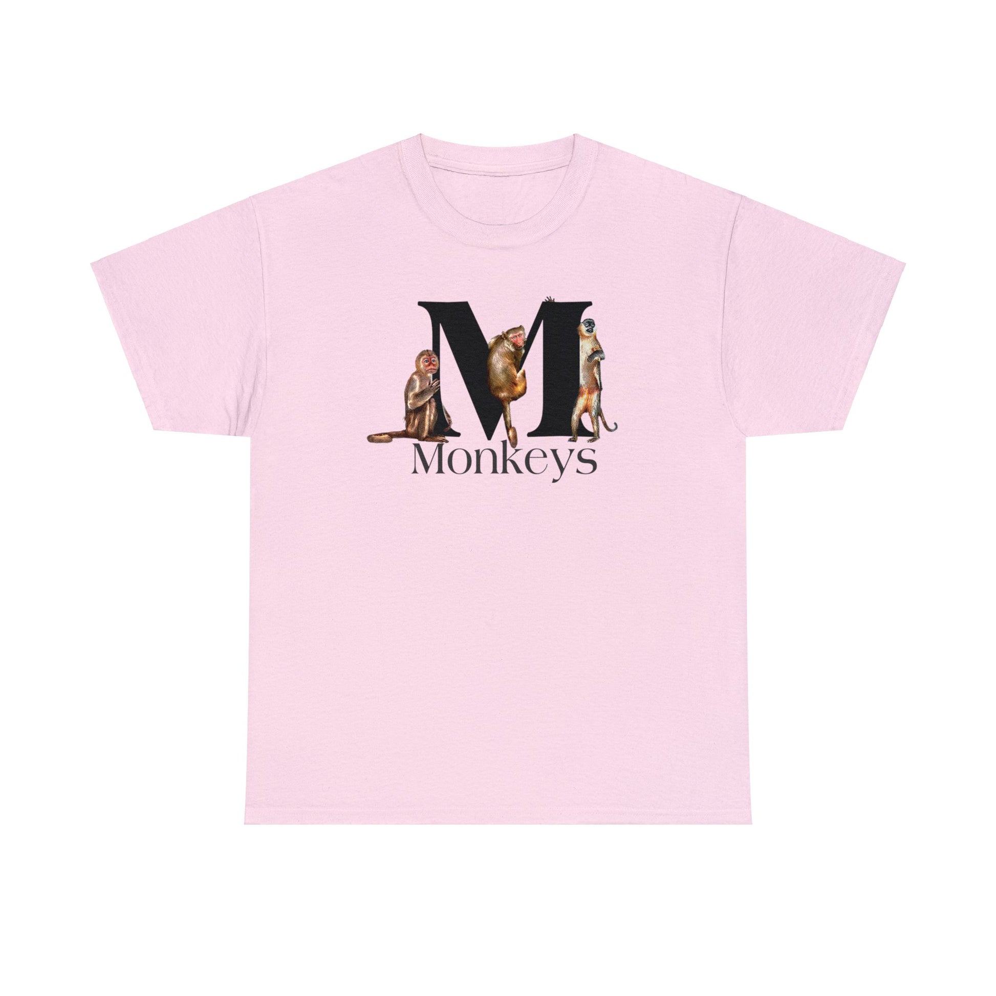 Rock this quirky t-shirt featuring a playful illustration of monkeys hanging on the letter M. Perfect for monkey lovers, this shirt is a double dose of fun and humor with wordplay and idiom. Go bananas!