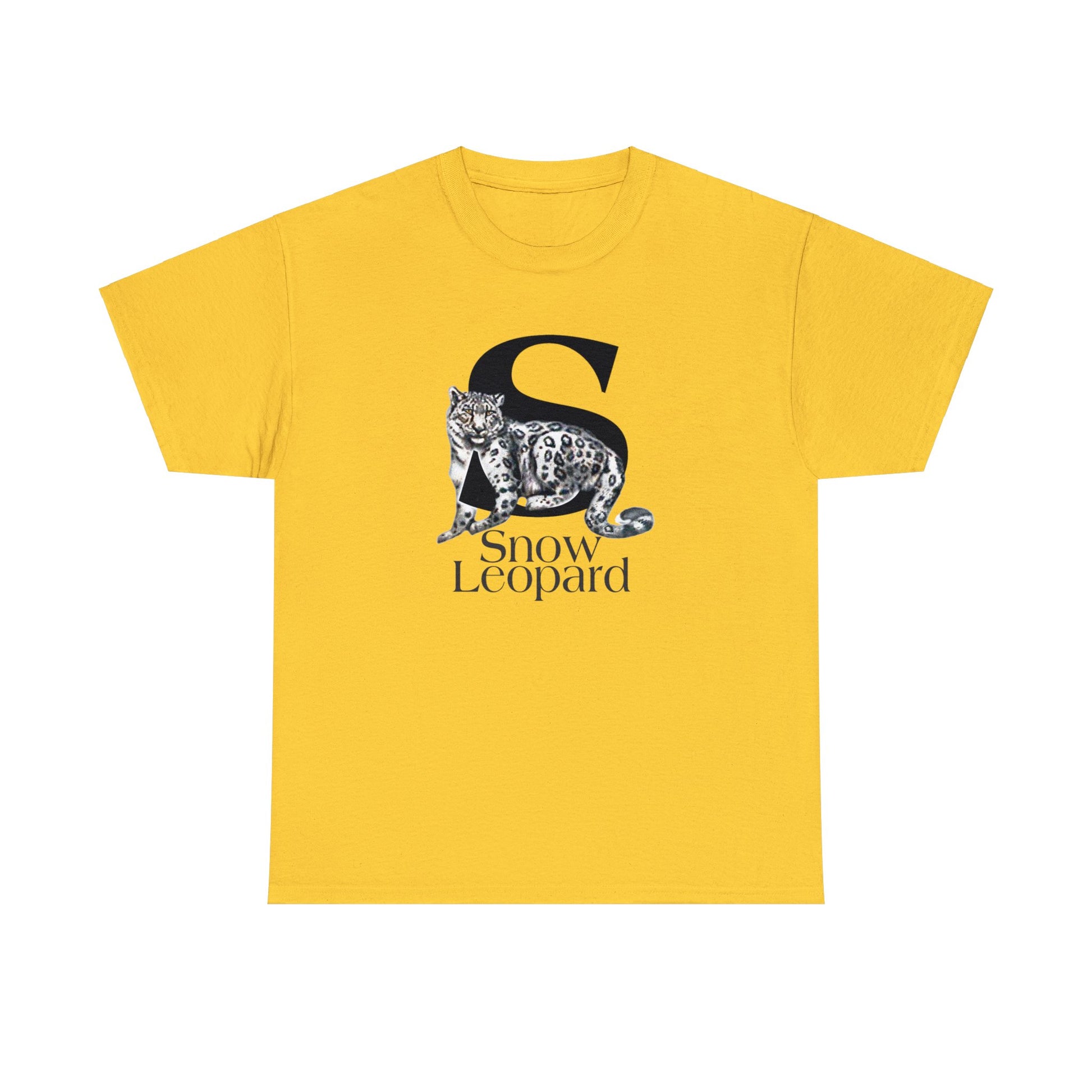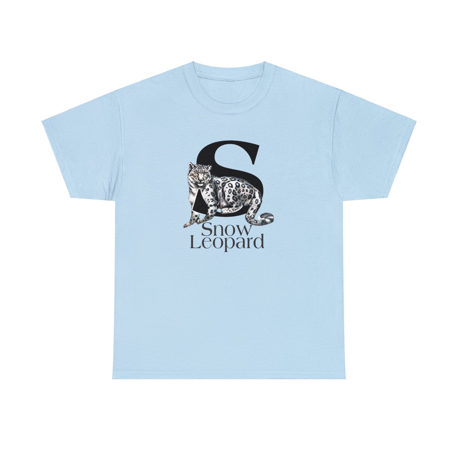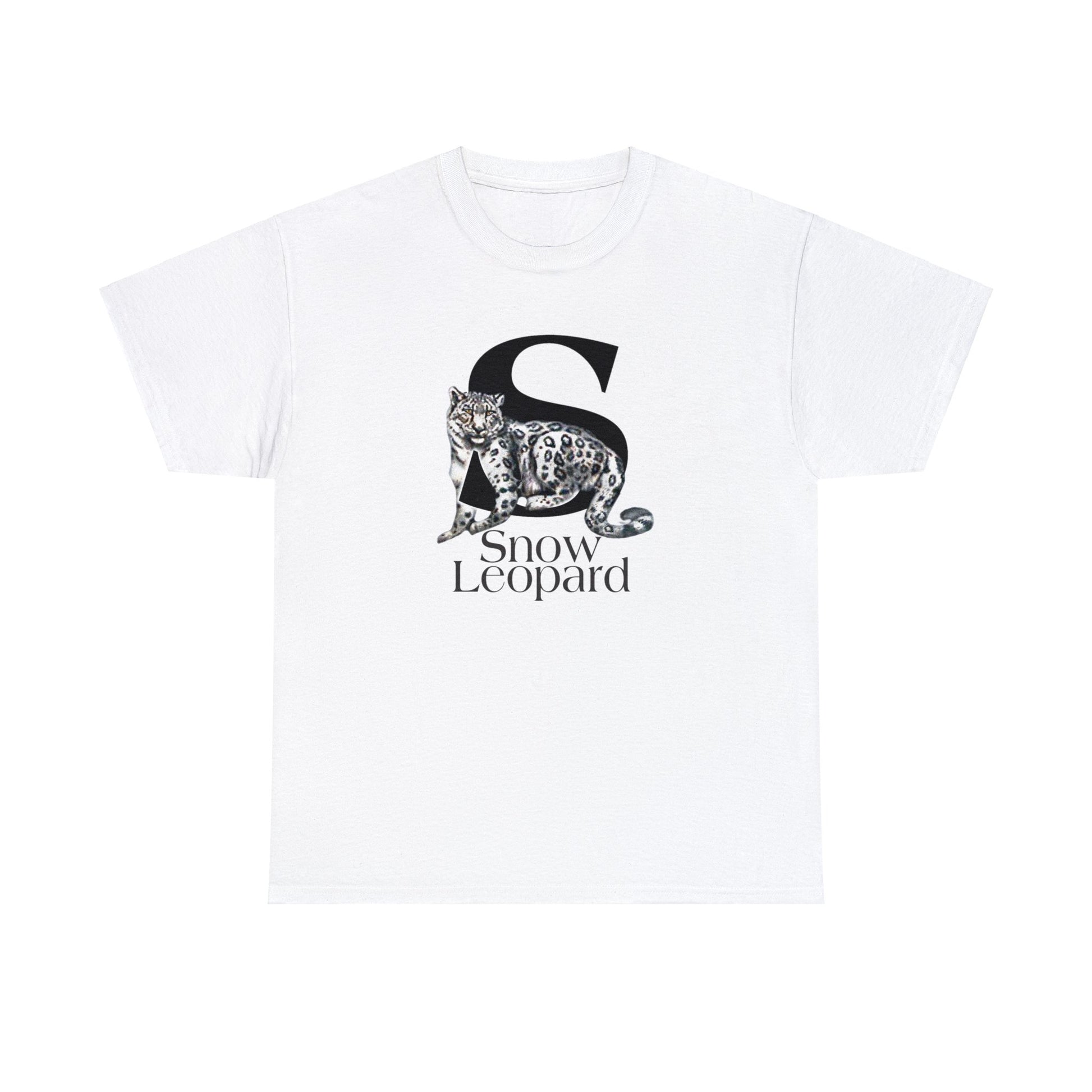 S is for Snow Leopard, flaunt your love for these majestic creatures with our Snow Leopard T-Shirt. Featuring a unique and playful illustration design, this shirt is perfect for any animal lover. Made with quality materials, it's comfortable and stylish. Get yours today!