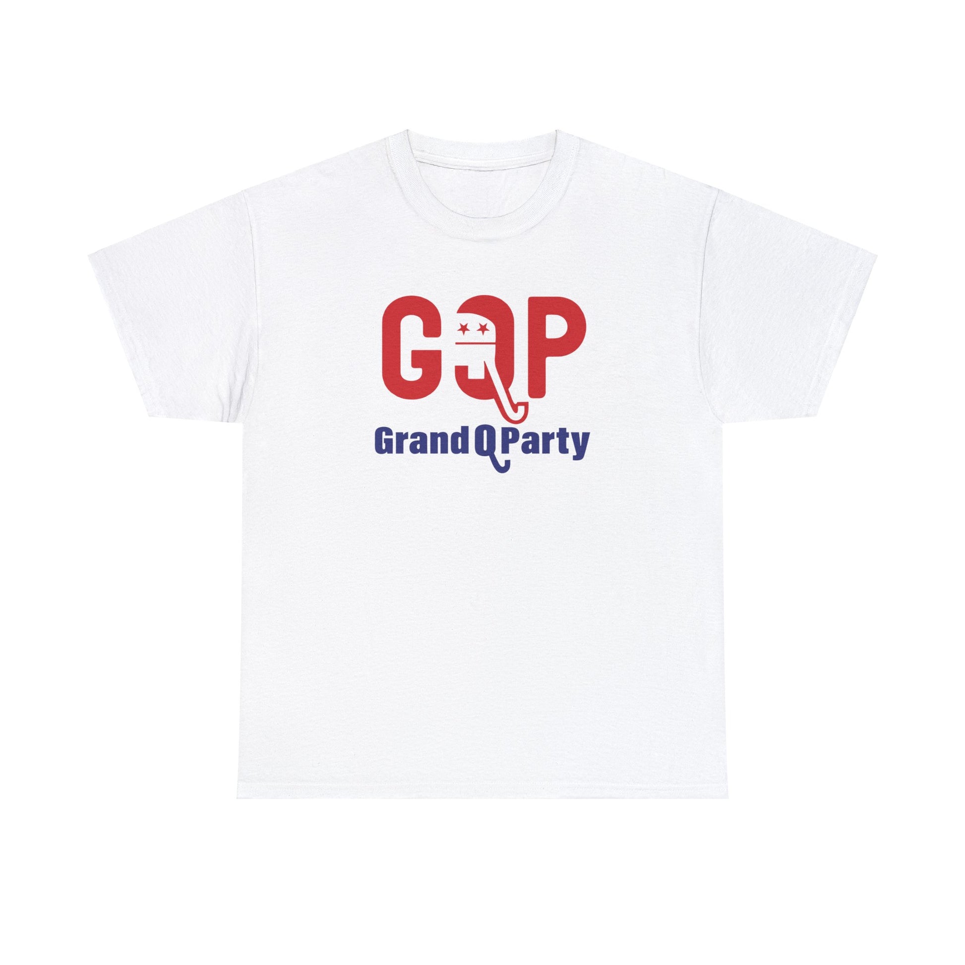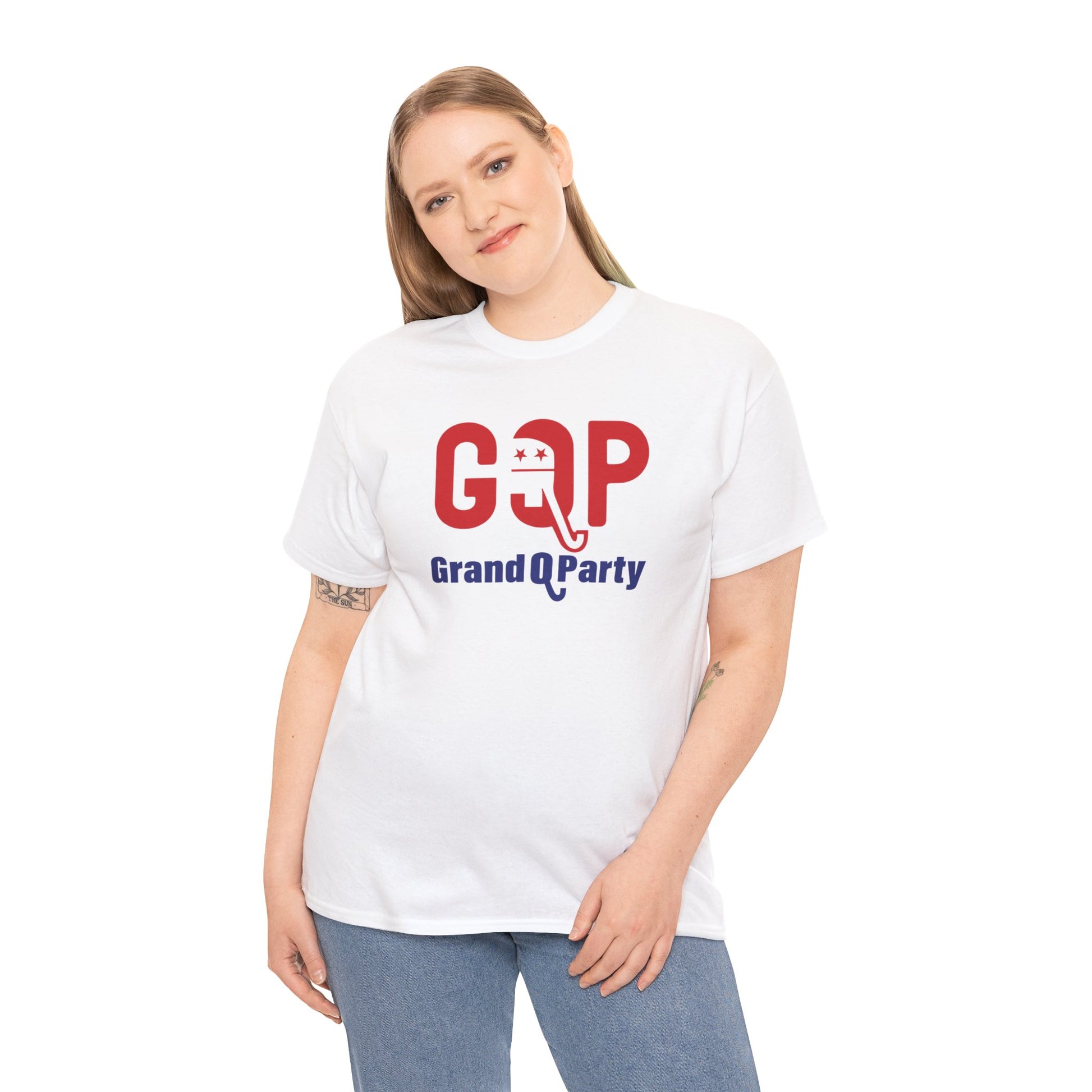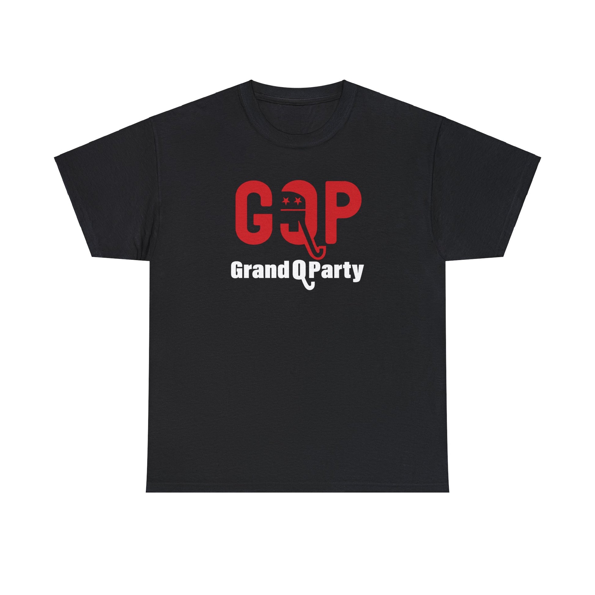 Be the life of the party at any political gathering with the GQP Grand Q Party T-Shirt, the perfect way to make a statement and poke fun at the GOP. This clever anti-Trump tee features a playful elephant design that grows its trunk with every lie the GOP Perpetuates (sorry, GOP, you can't deny the truth!).