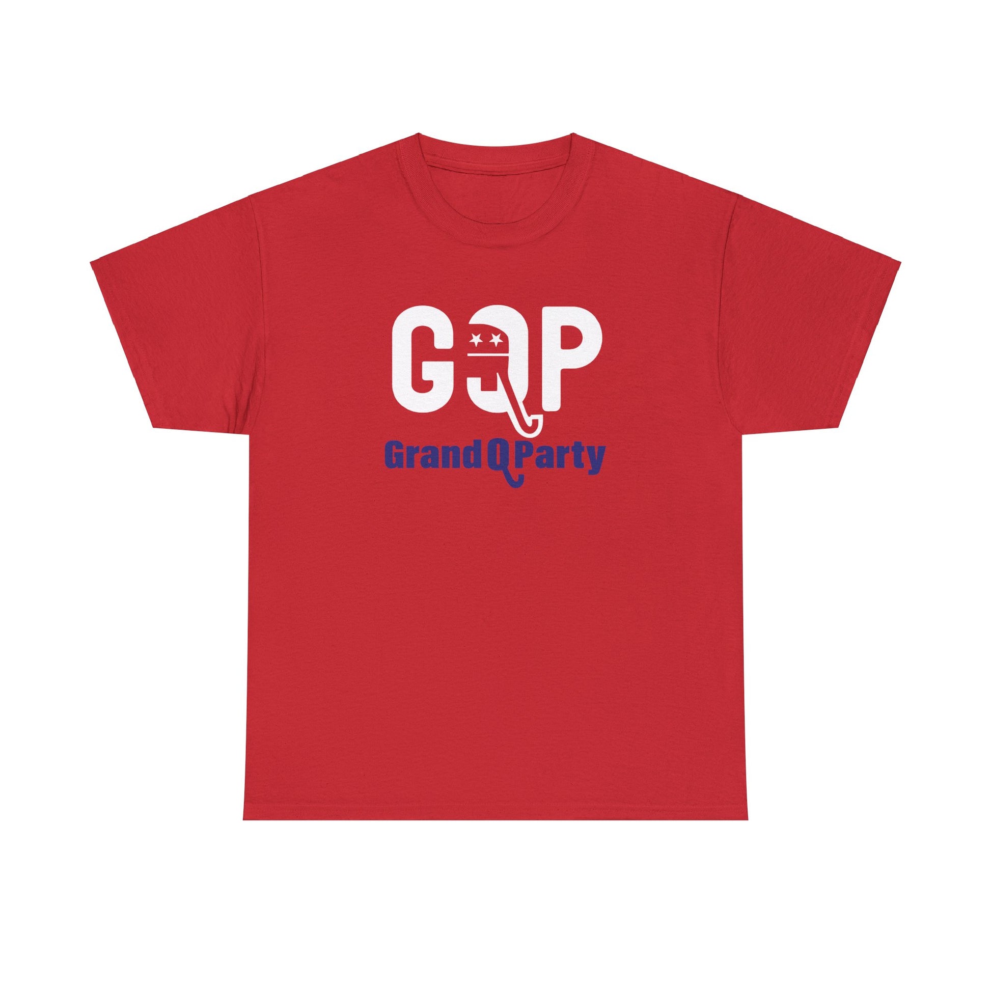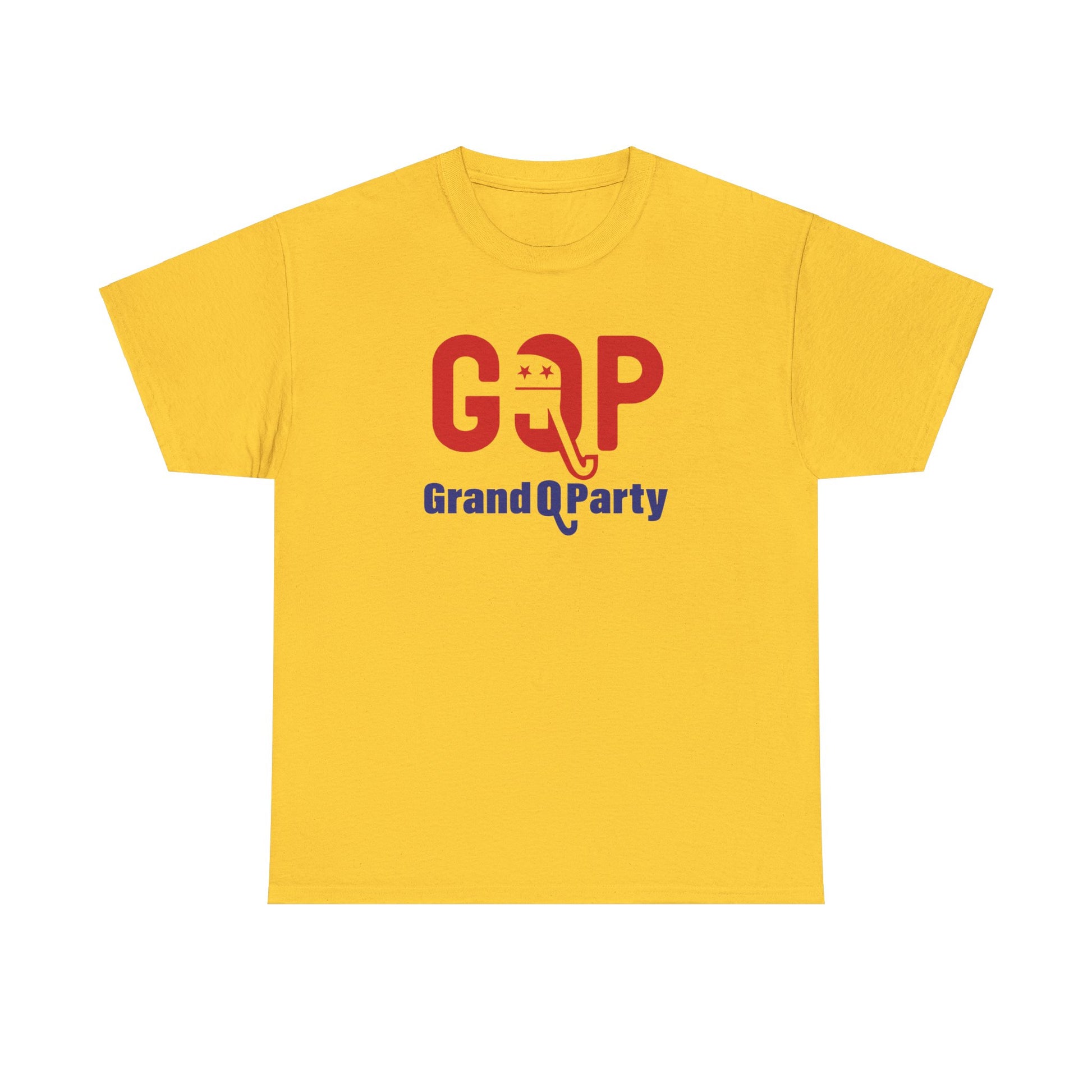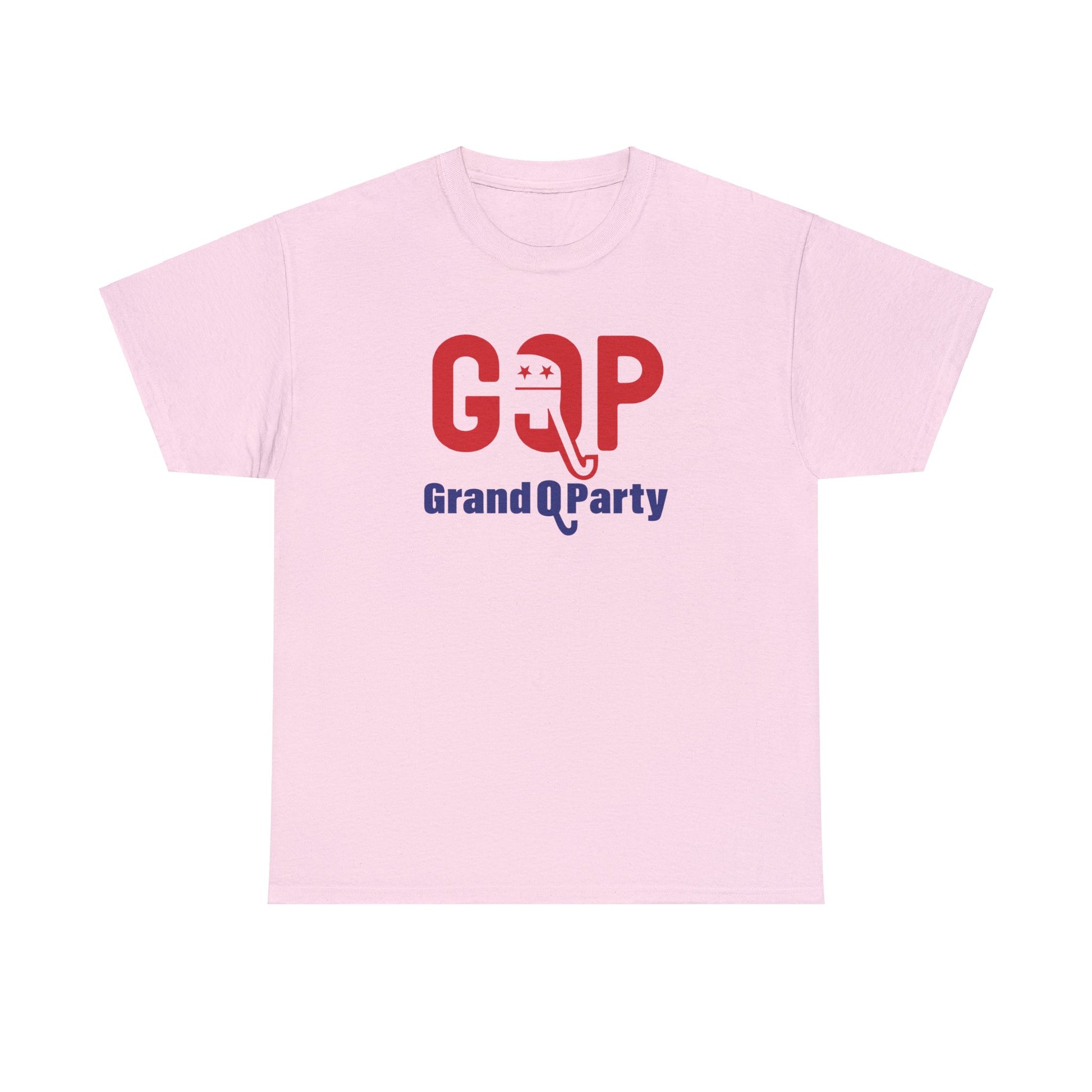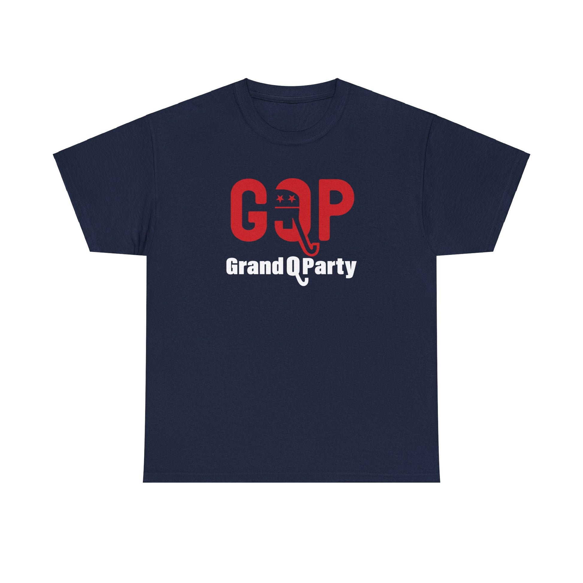 Be the life of the party at any political gathering with the GQP Grand Q Party T-Shirt, the perfect way to make a statement and poke fun at the GOP. This clever anti-Trump tee features a playful elephant design that grows its trunk with every lie the GOP Perpetuates (sorry, GOP, you can't deny the truth!).