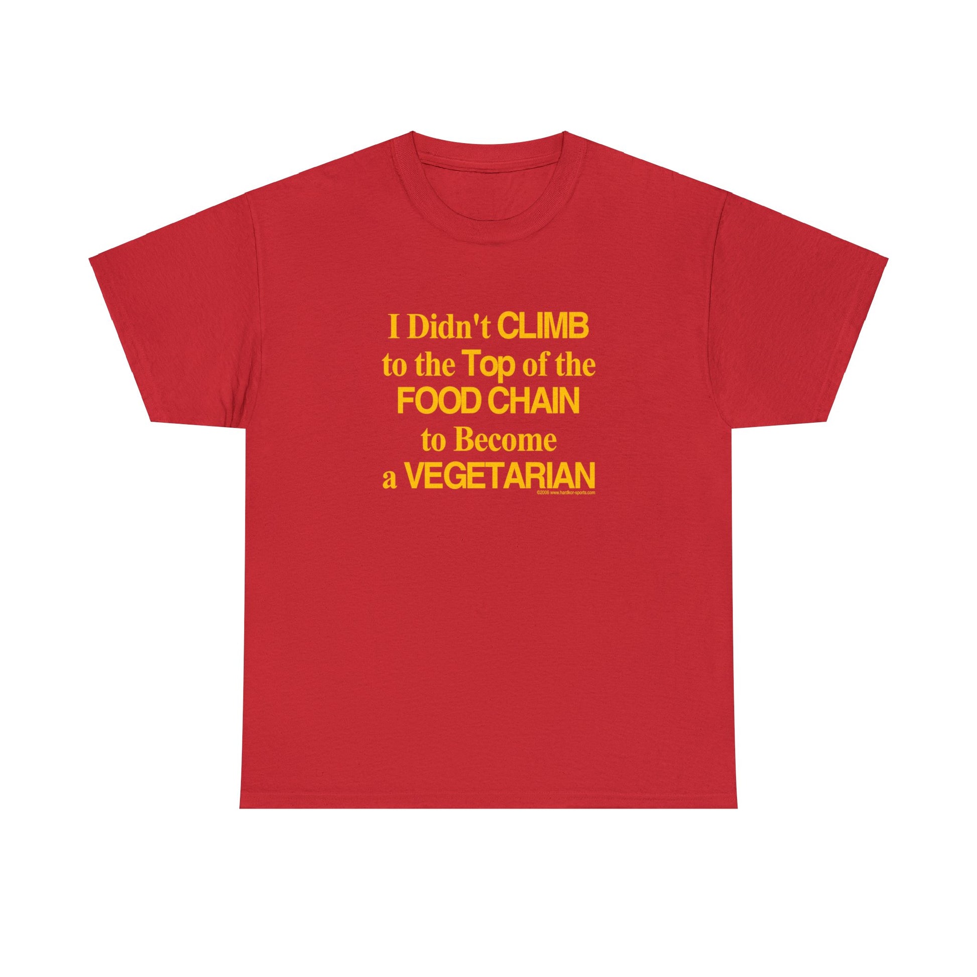 Do you love meat. Beef, Chicken, Pork? Do you wear that badge proudly and denounce all things green and leafy? They wear the , I Didn't Climb to the Top of the Food Chain to Become a Vegetarian, t-shirt.