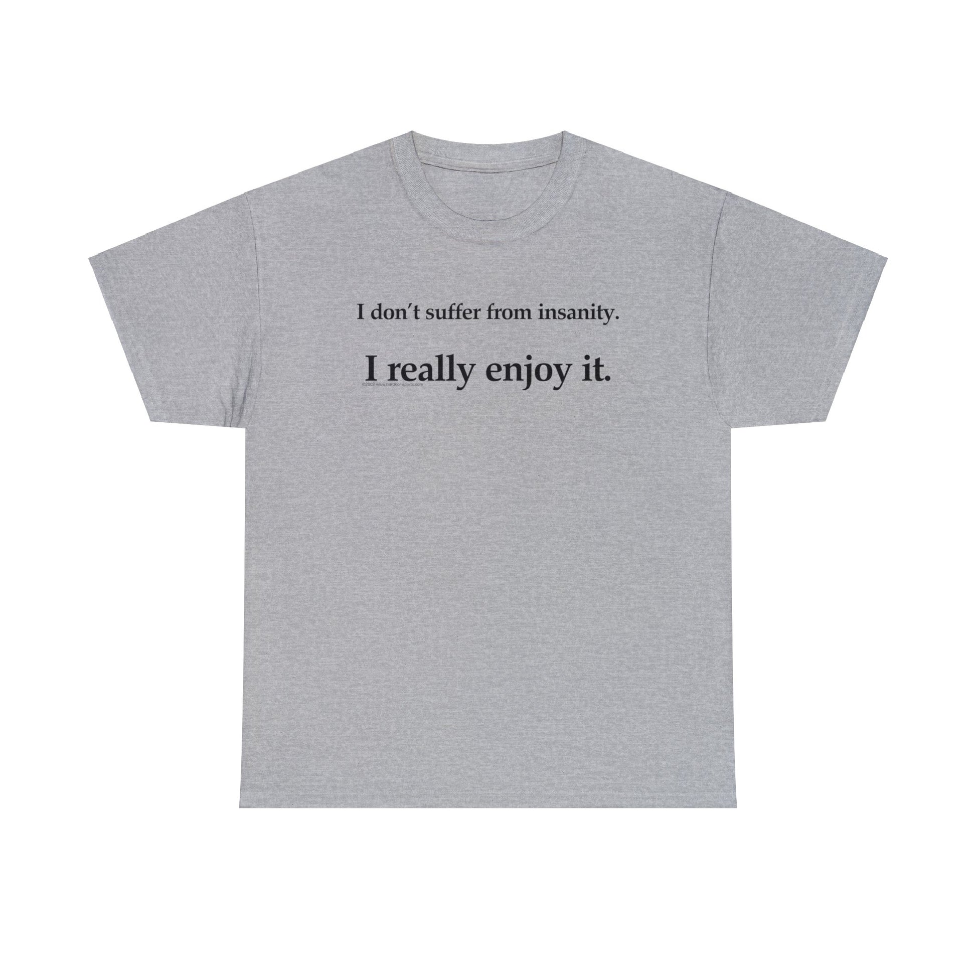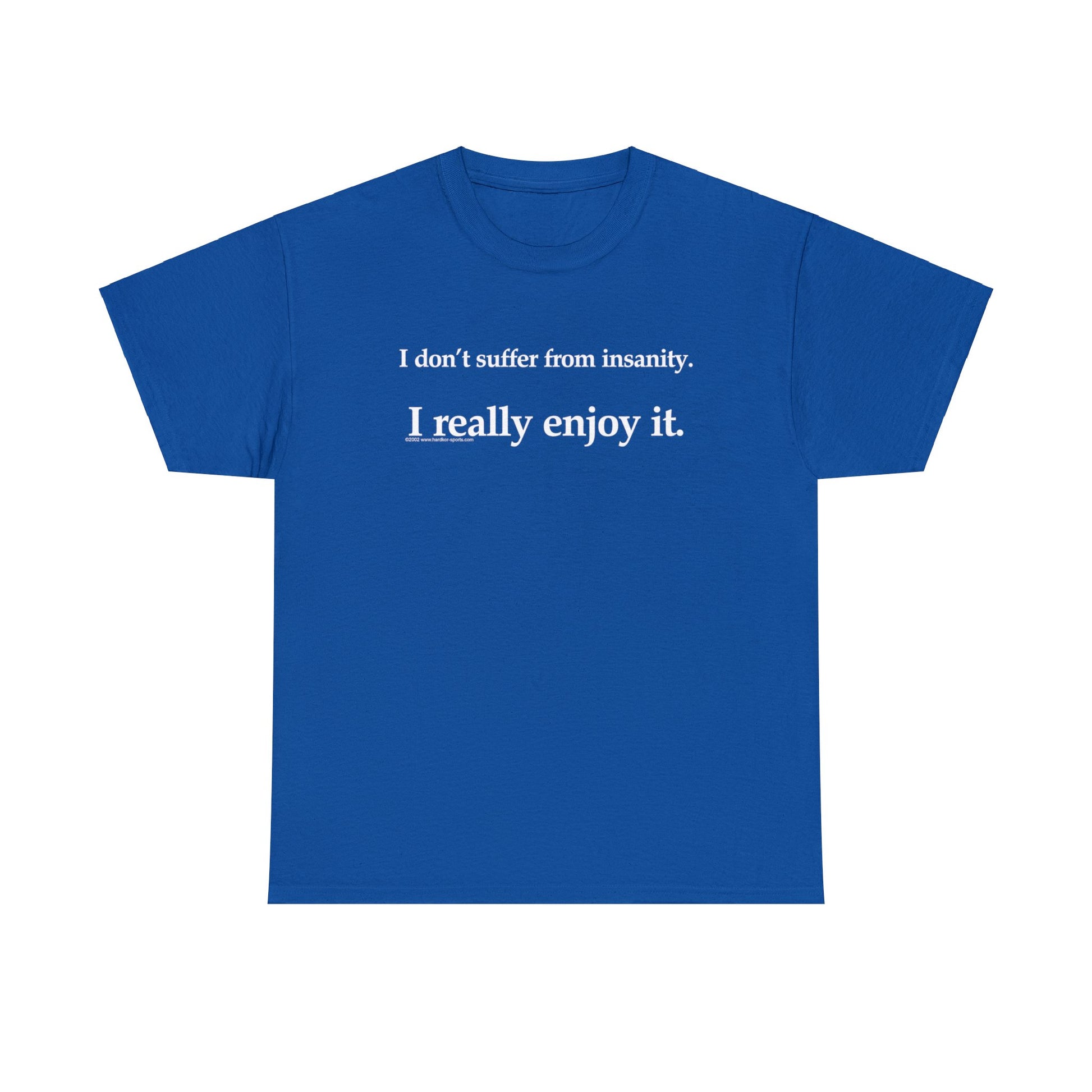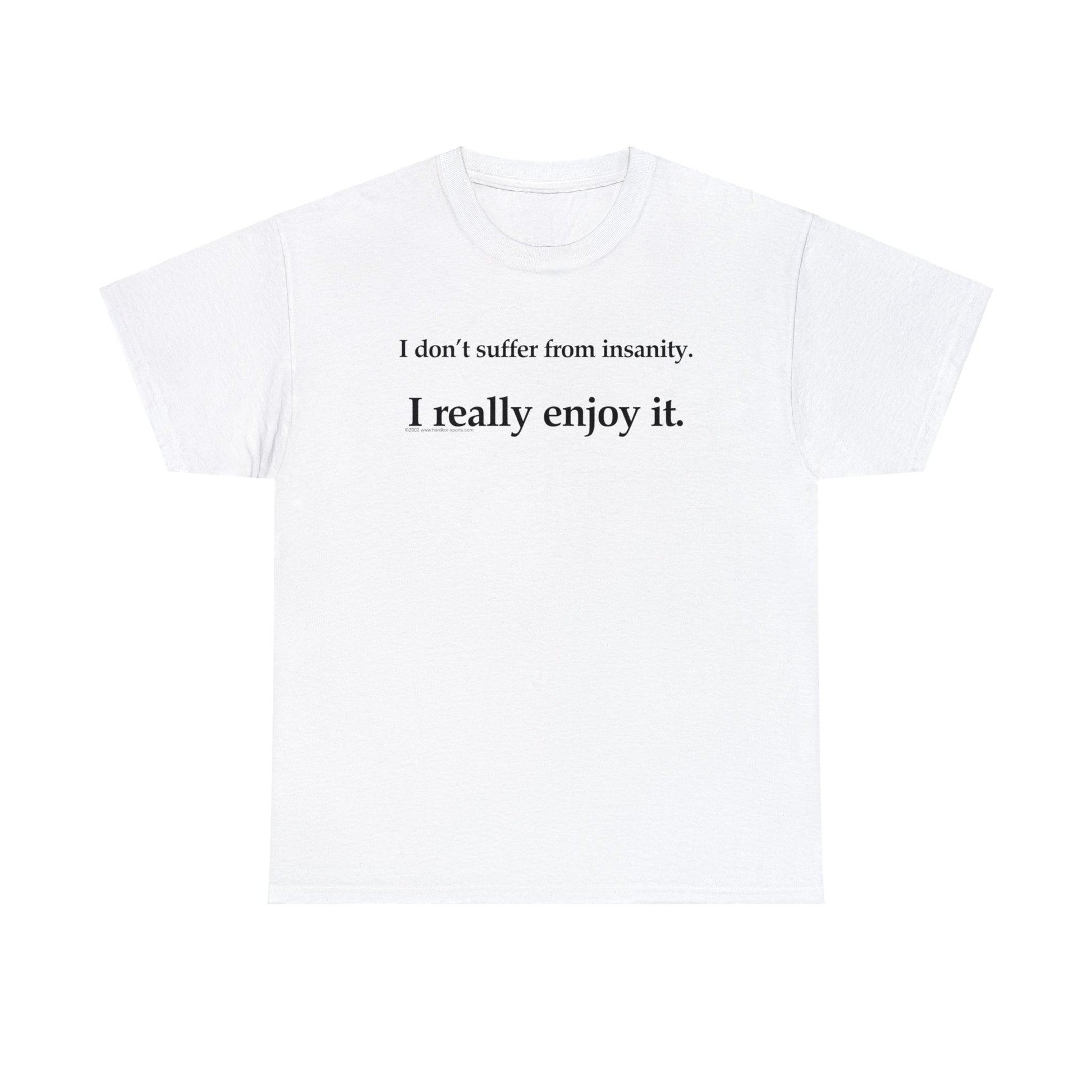 I Don't Suffer From Reality, I Enjoy It, funny t-shirt, satirical t-shirt, dark humor t-shirt, Crazy T-Shirt, Insanity T-Shirt, Insane Tee