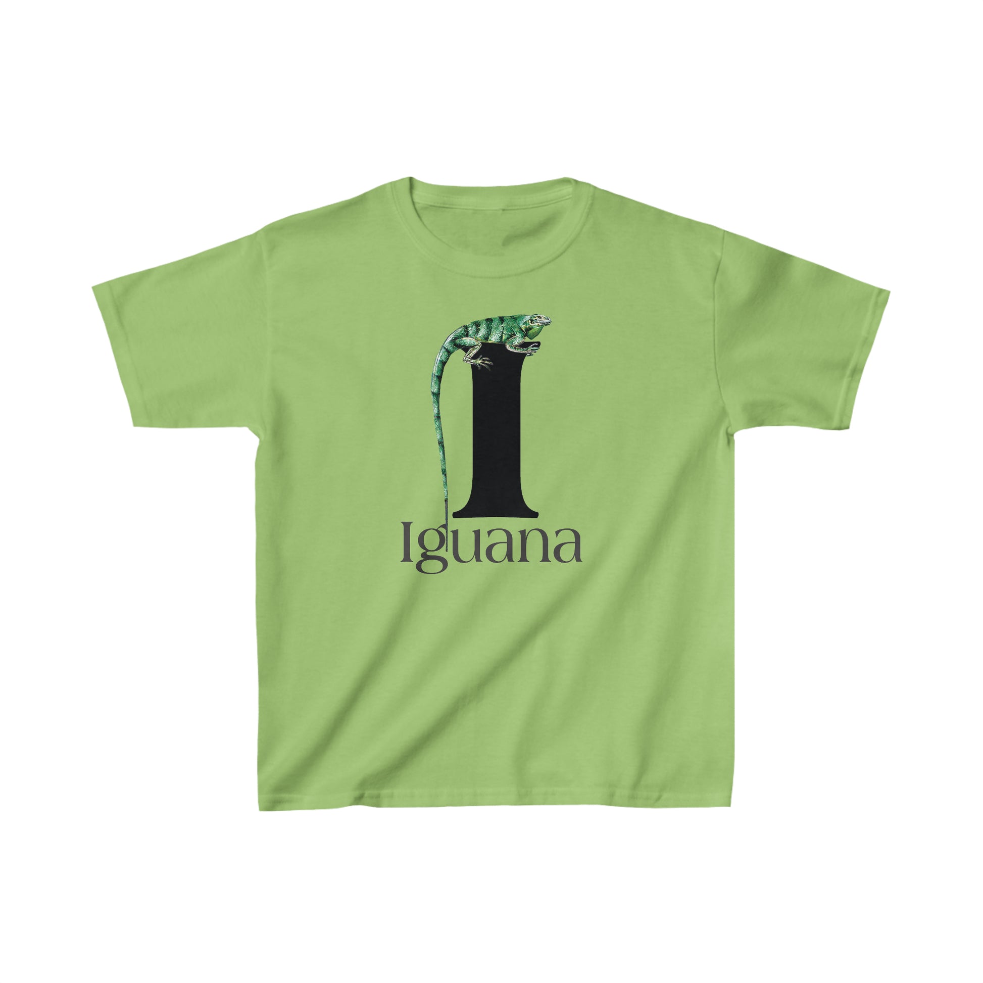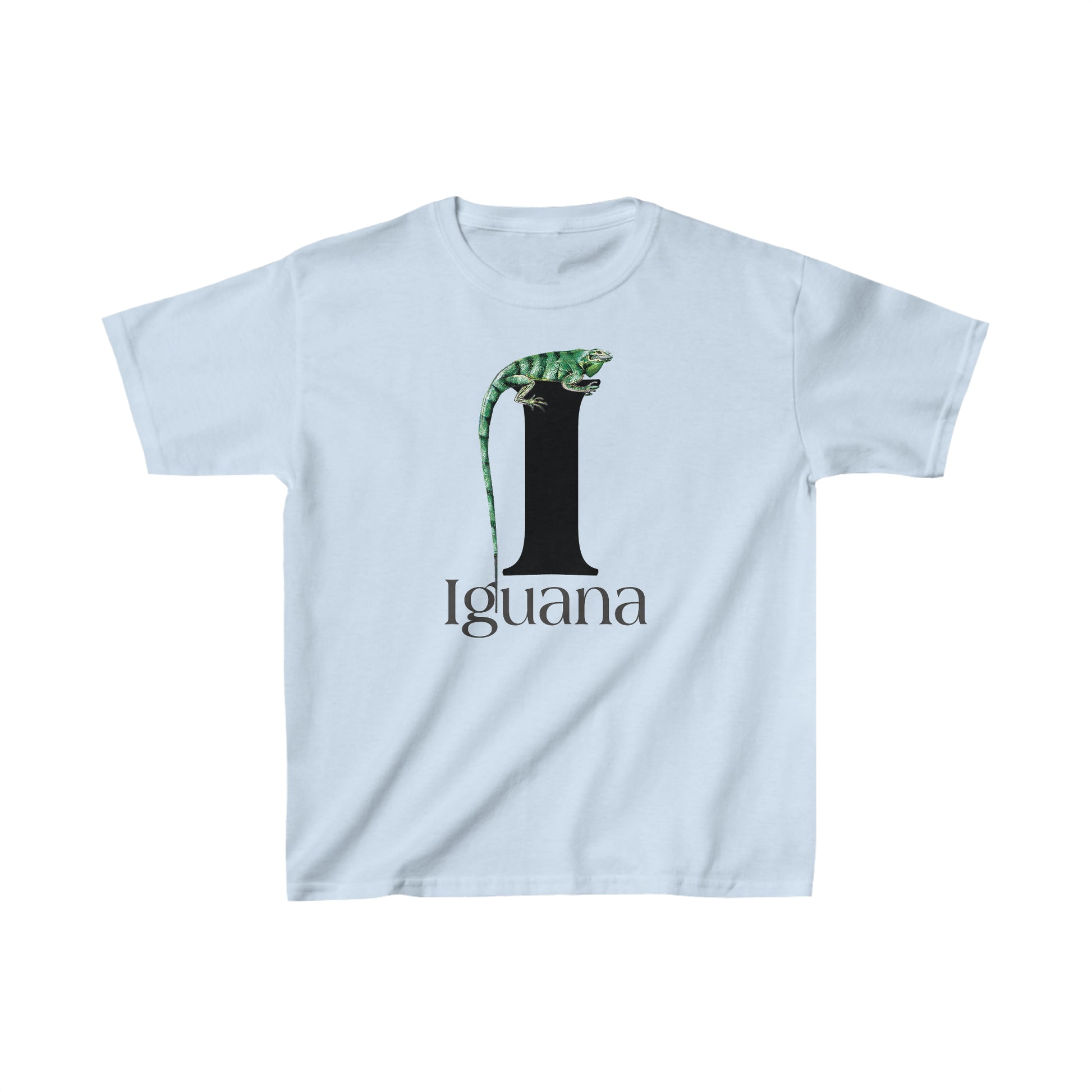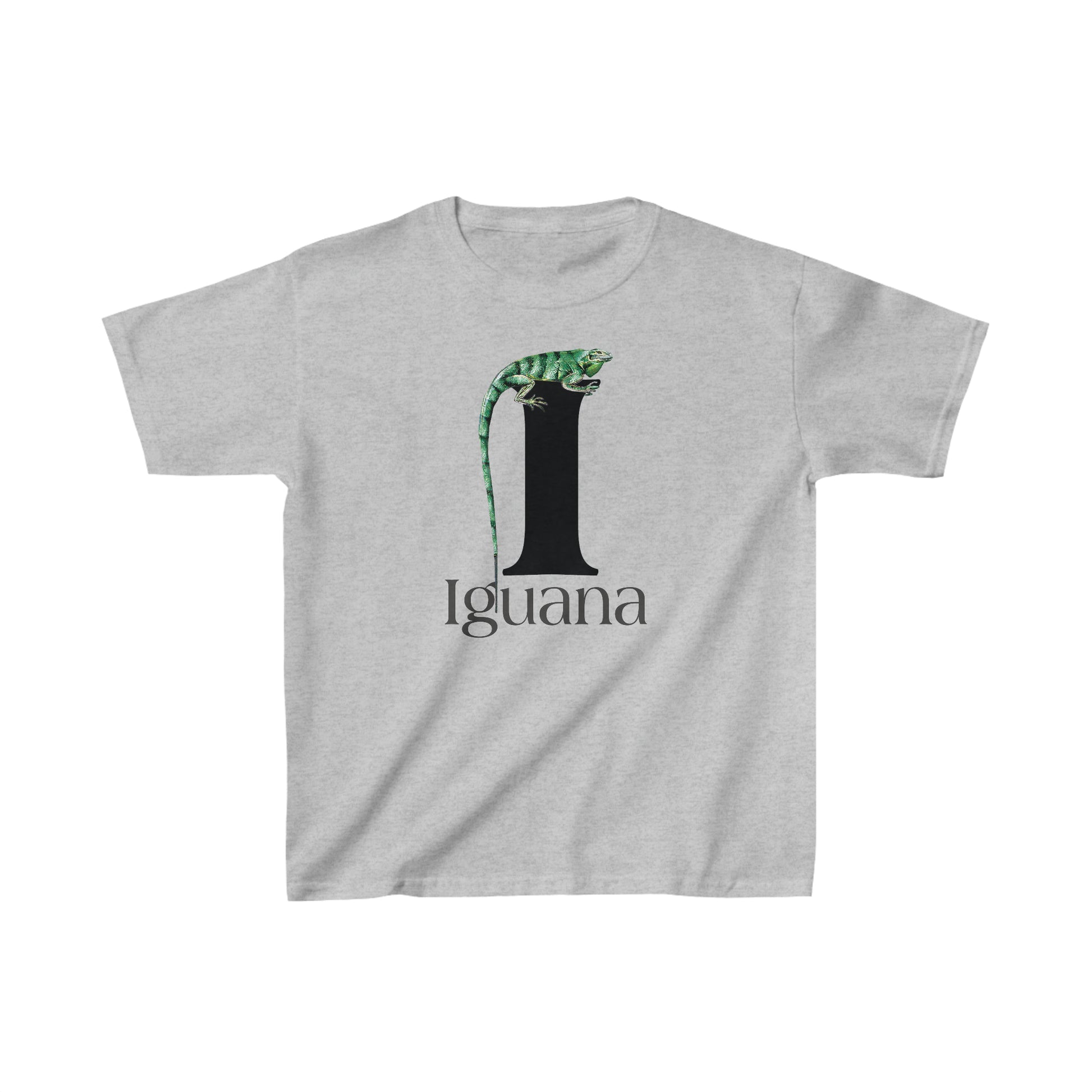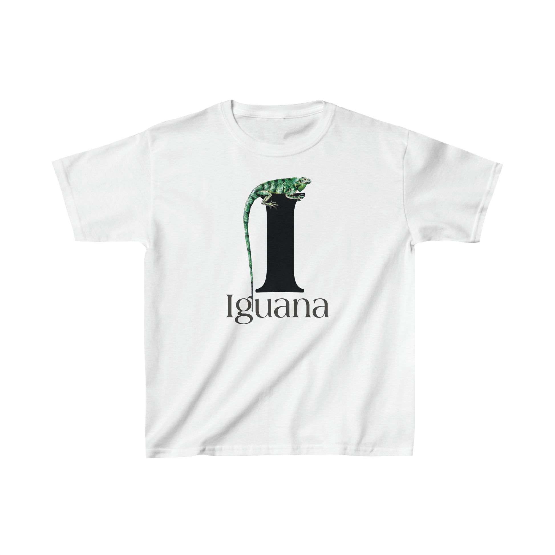 I is for Iguana, the stoic, steady gauze of this Iguana perched on top of a letter I. This Iguana t-shirt is designed with a classic illustrated look with bold letter I. This series of adorable animals are depicted as characters of the Alphabet. A for Alligator, to Z for Zebra.