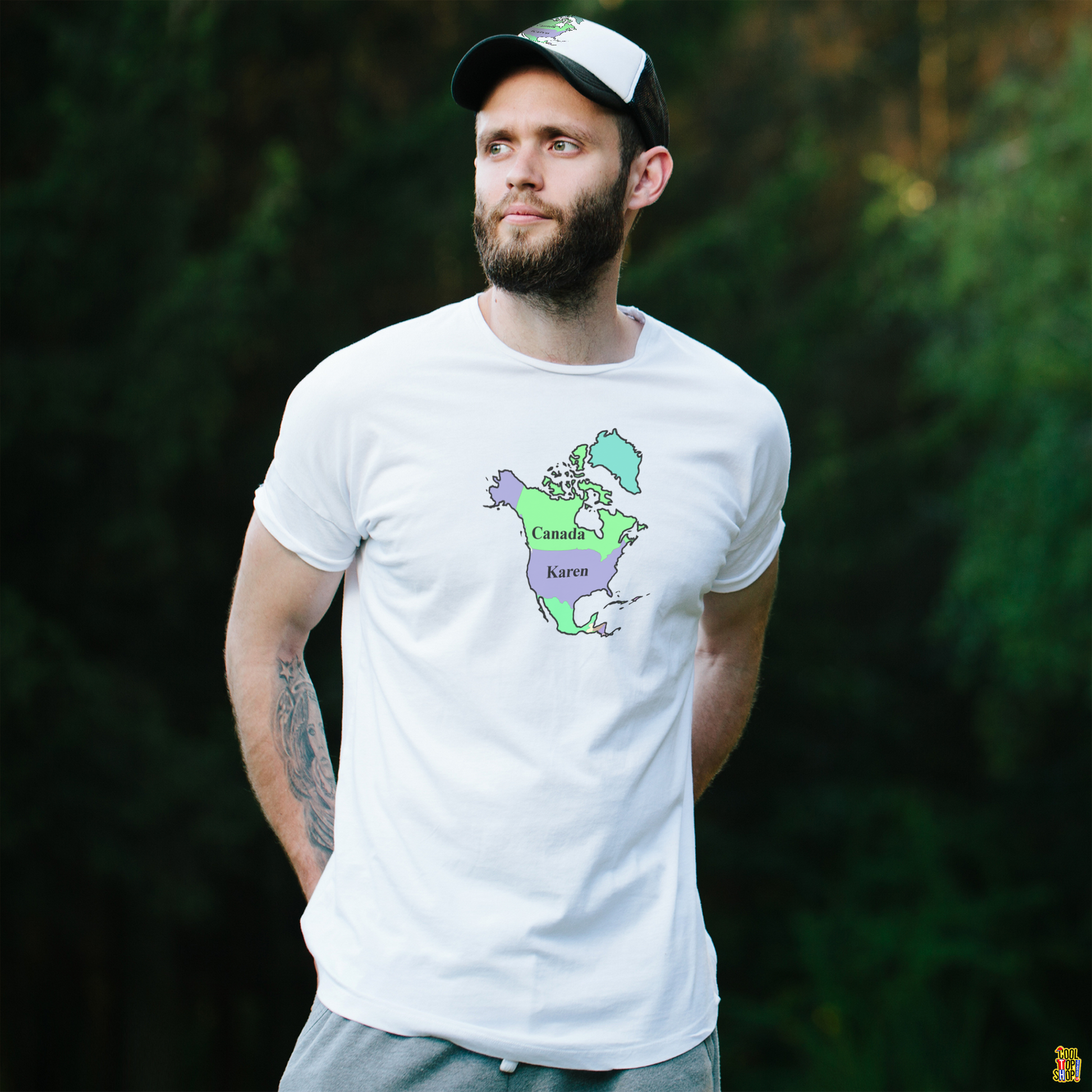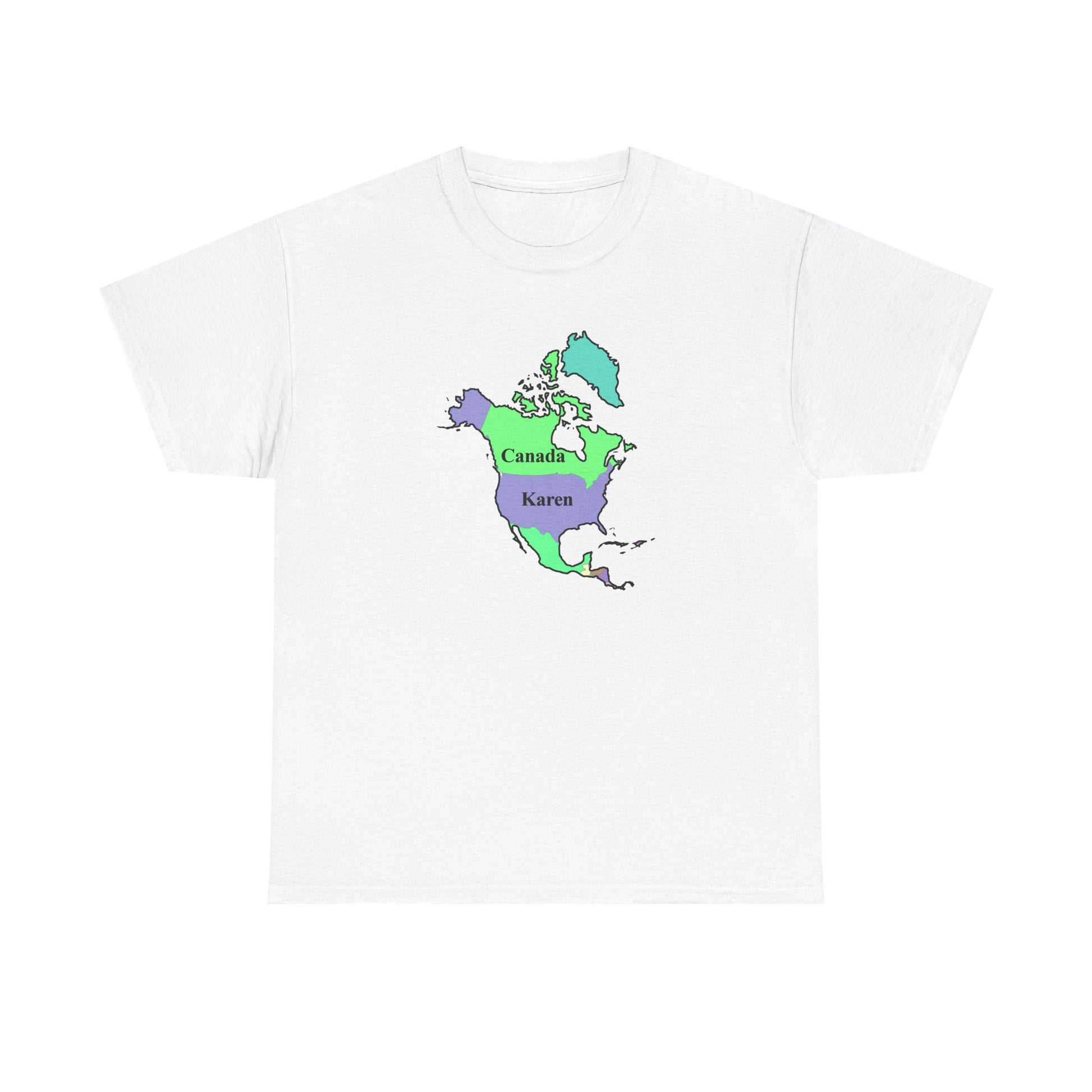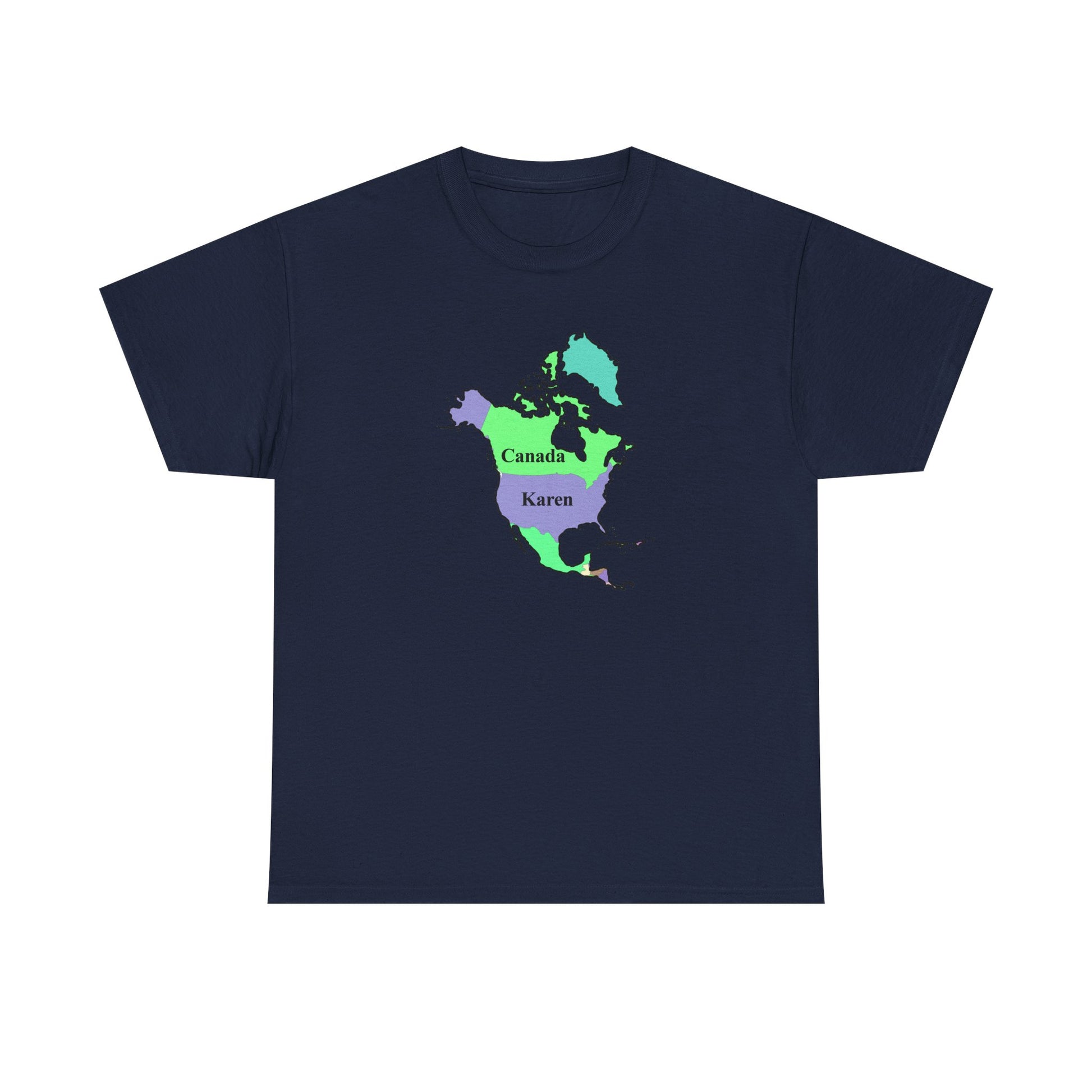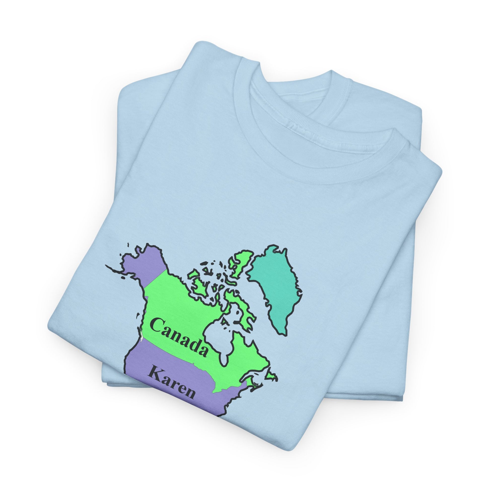 Add a bit of humor to your wardrobe with this Funny Political T-Shirt! Featuring a bold North America map design, this tee labels the USA as "Karen" while proudly proclaiming "Canada" as its own, with a cheeky nod to "Never 51" – a playful jab at the idea of Canada becoming the 51st state. Perfect for those who love witty political humor, this shirt is a great conversation starter for Canadians, Americans, or anyone with a sense of humor about North American relations.