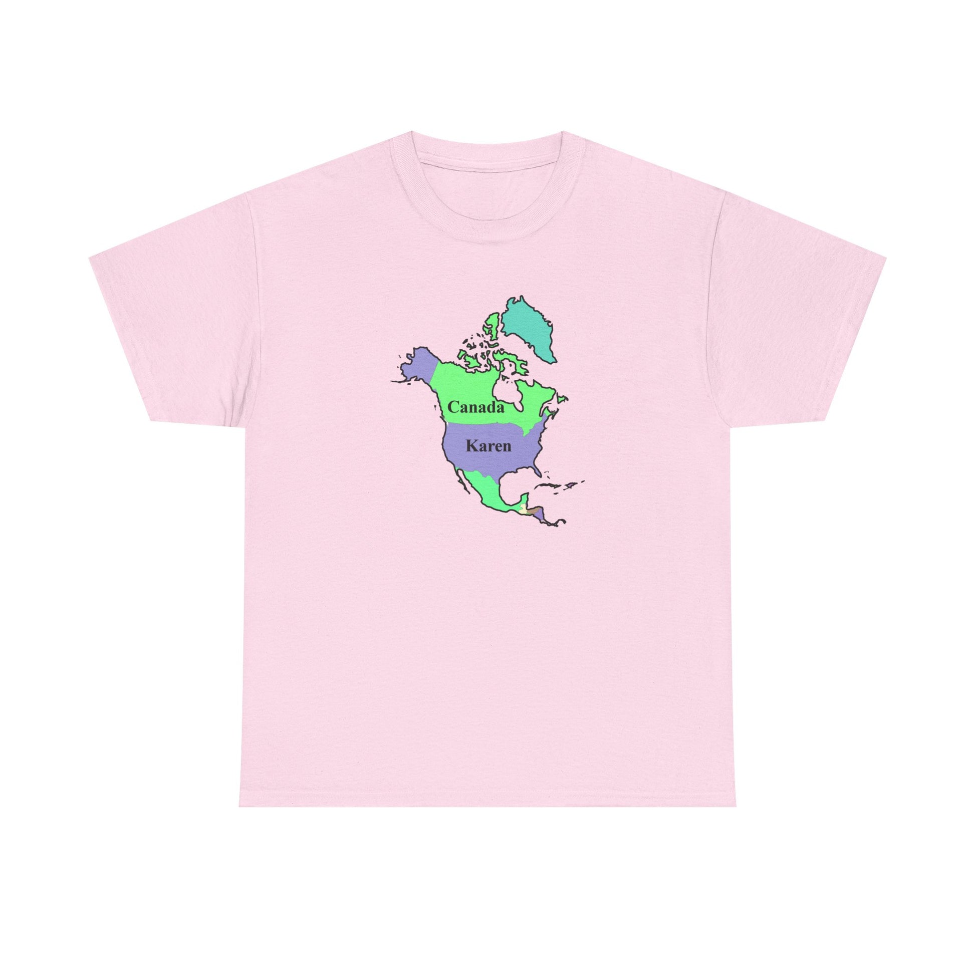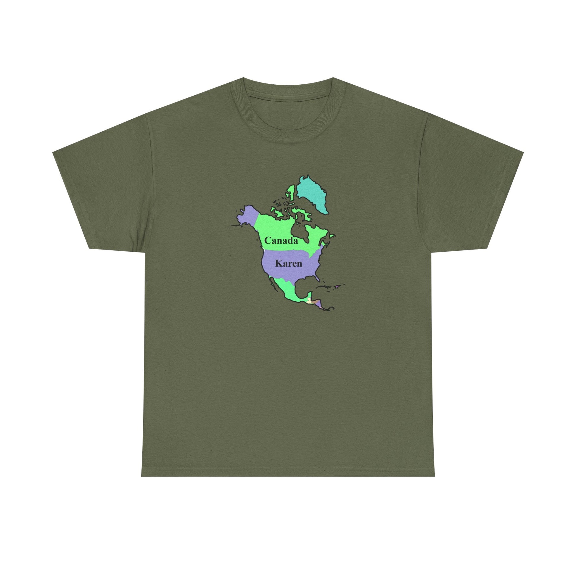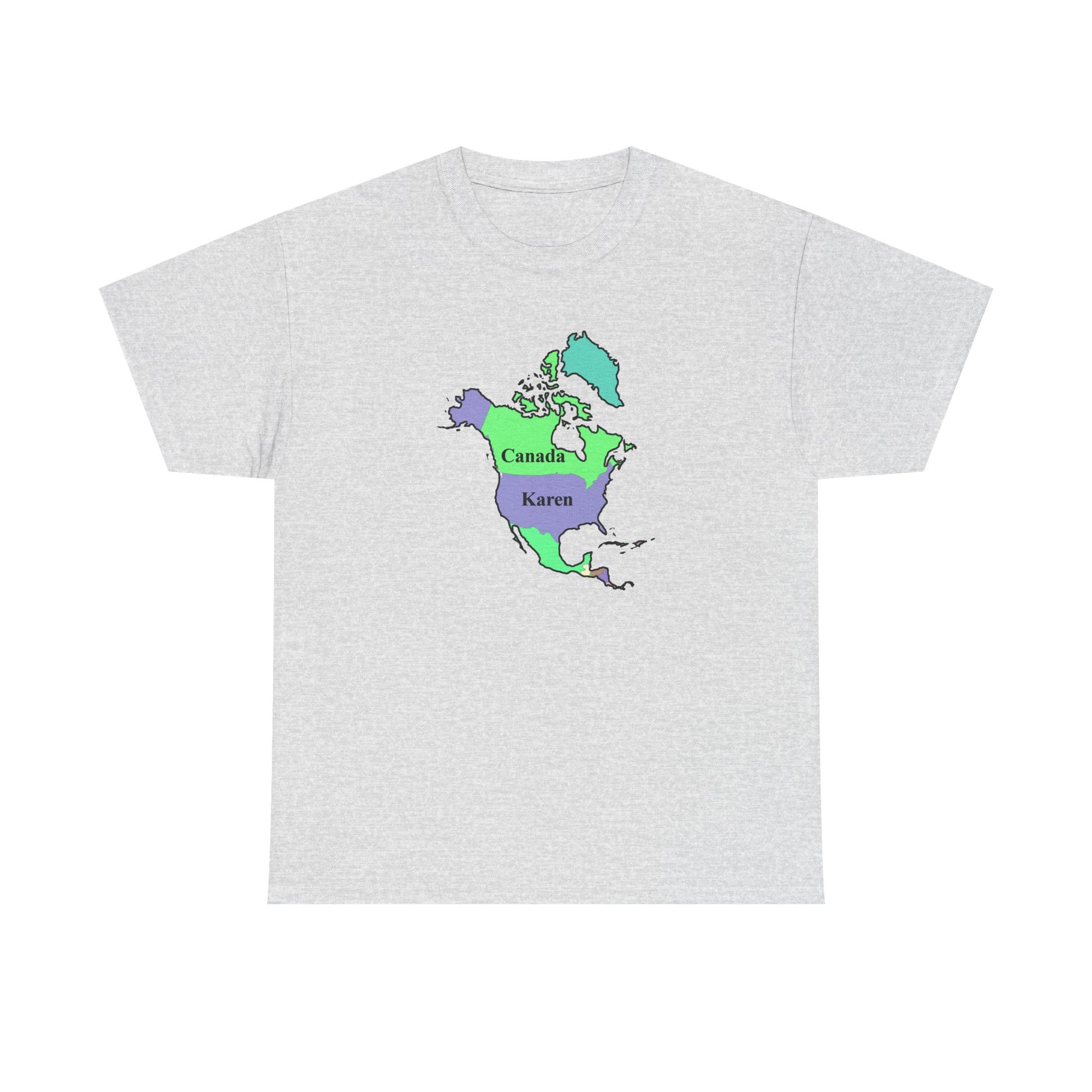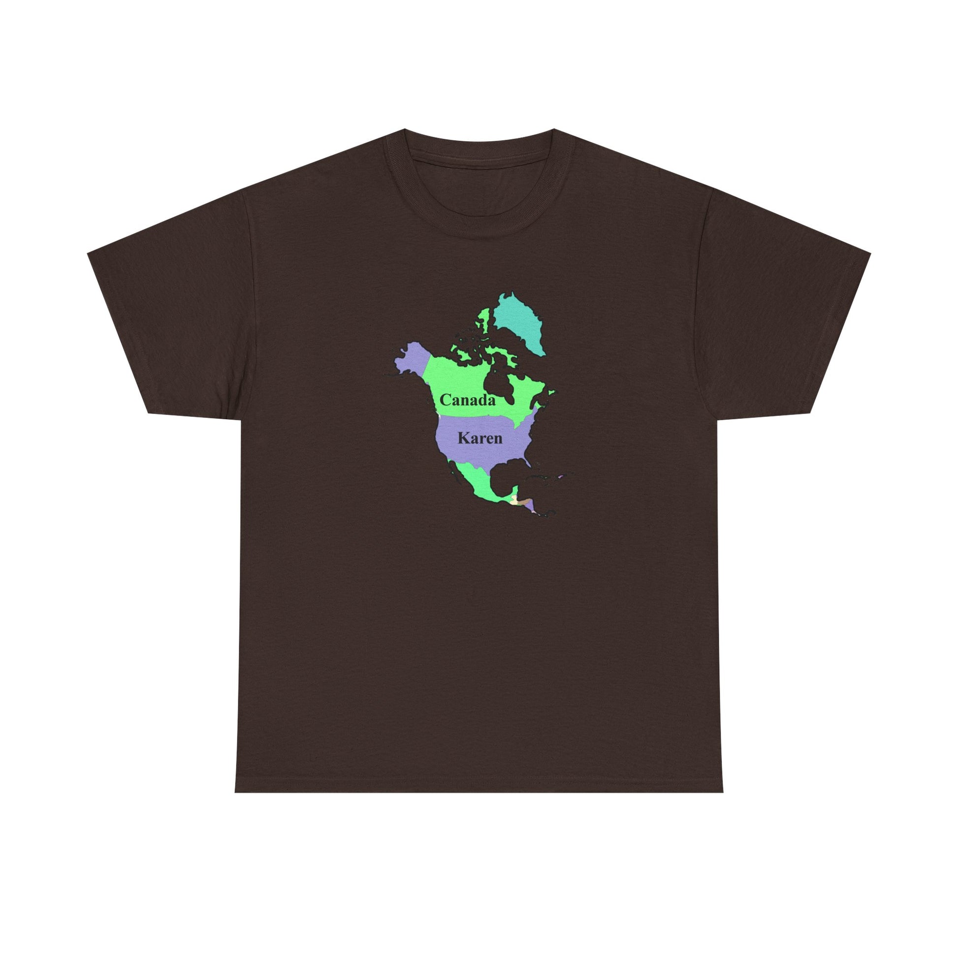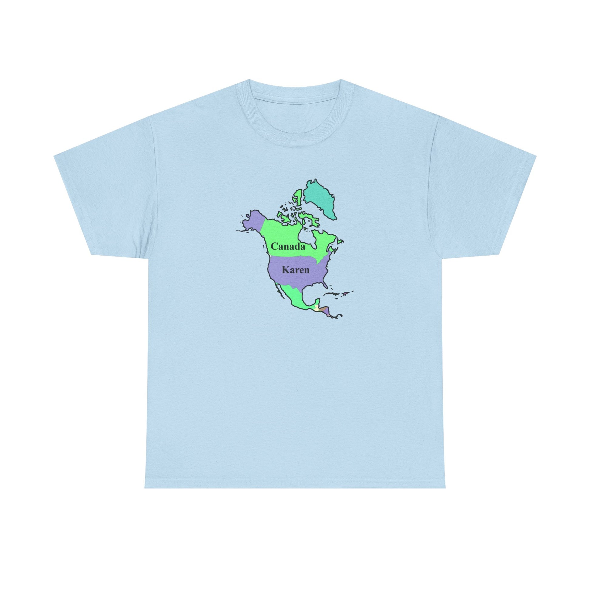 Add a bit of humor to your wardrobe with this Funny Political T-Shirt! Featuring a bold North America map design, this tee labels the USA as "Karen" while proudly proclaiming "Canada" as its own, with a cheeky nod to "Never 51" – a playful jab at the idea of Canada becoming the 51st state. Perfect for those who love witty political humor, this shirt is a great conversation starter for Canadians, Americans, or anyone with a sense of humor about North American relations.
