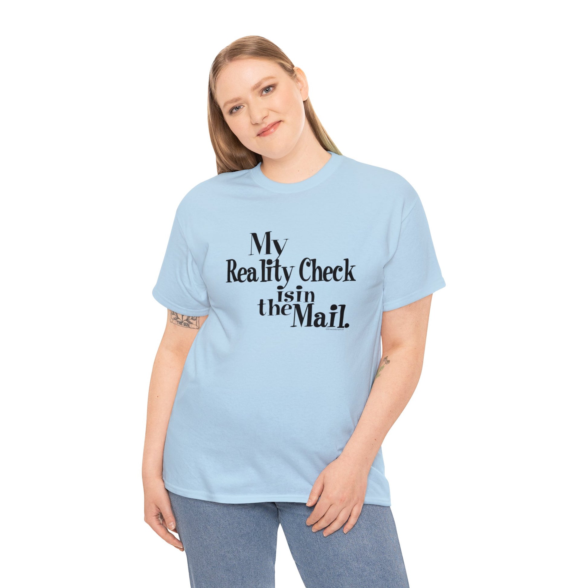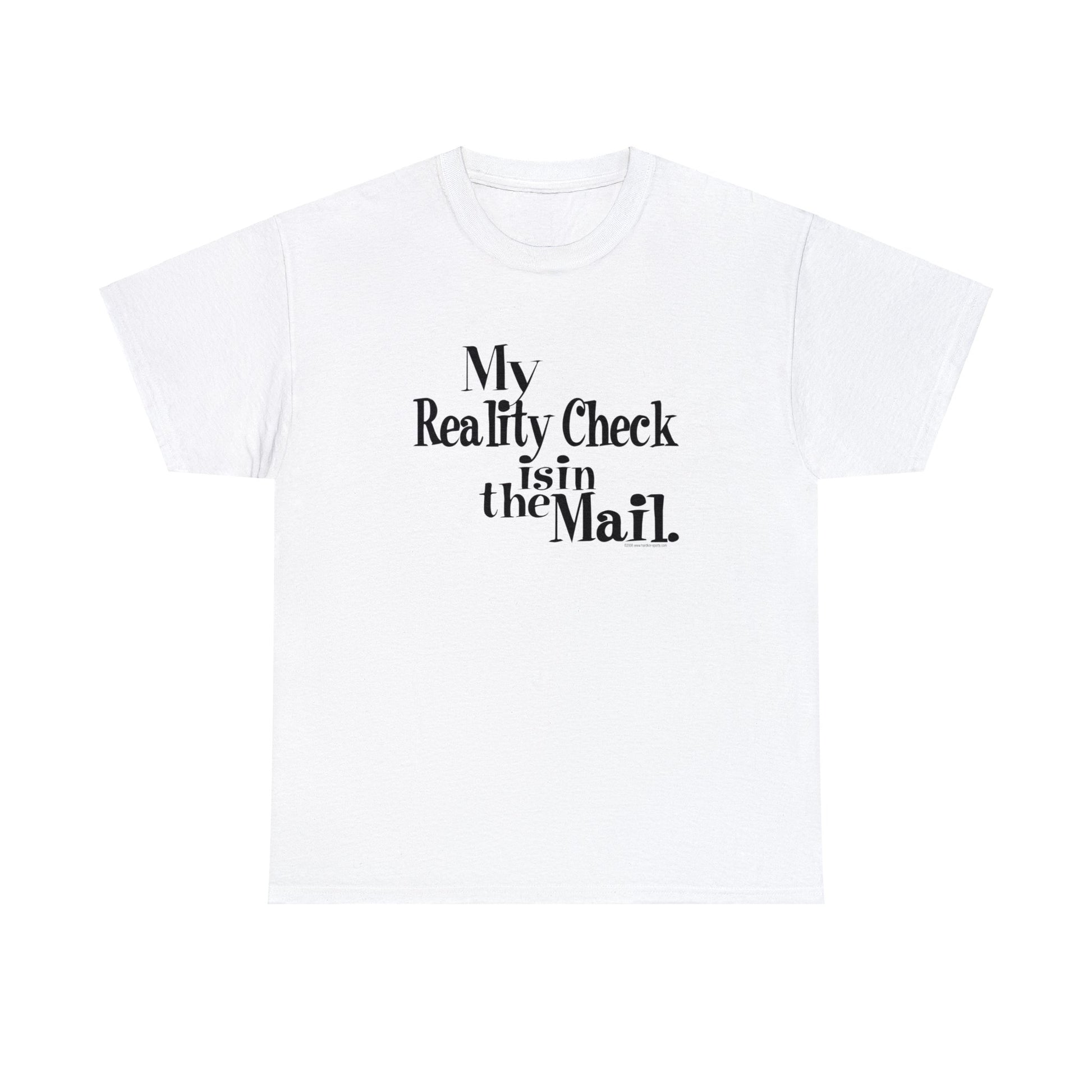 My Reality Check is in the Mail, funny t-shirt, Crazy t-shirt, reality check tee, humorous t-shirt, ironic t-shirt, t-shirt gift, reality T