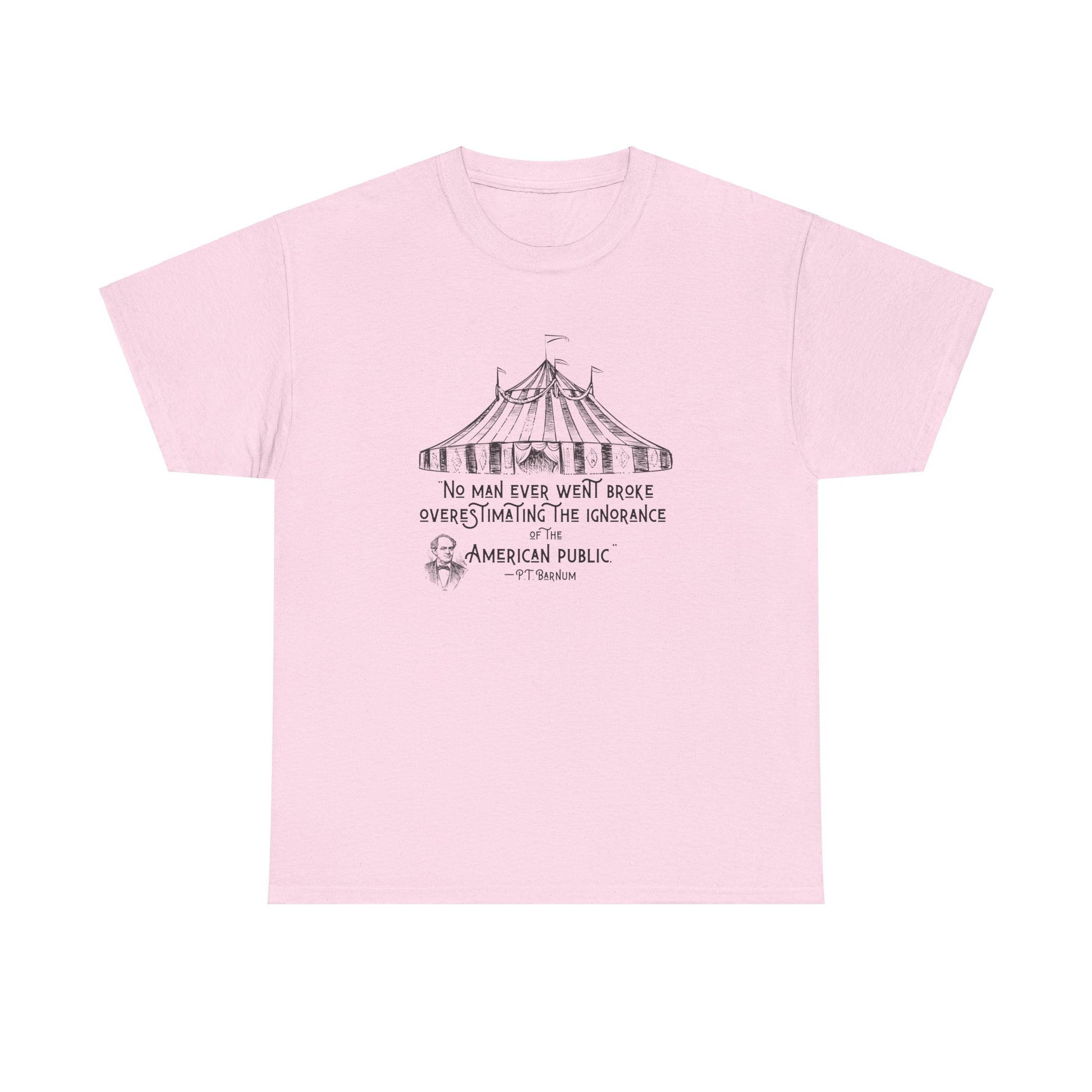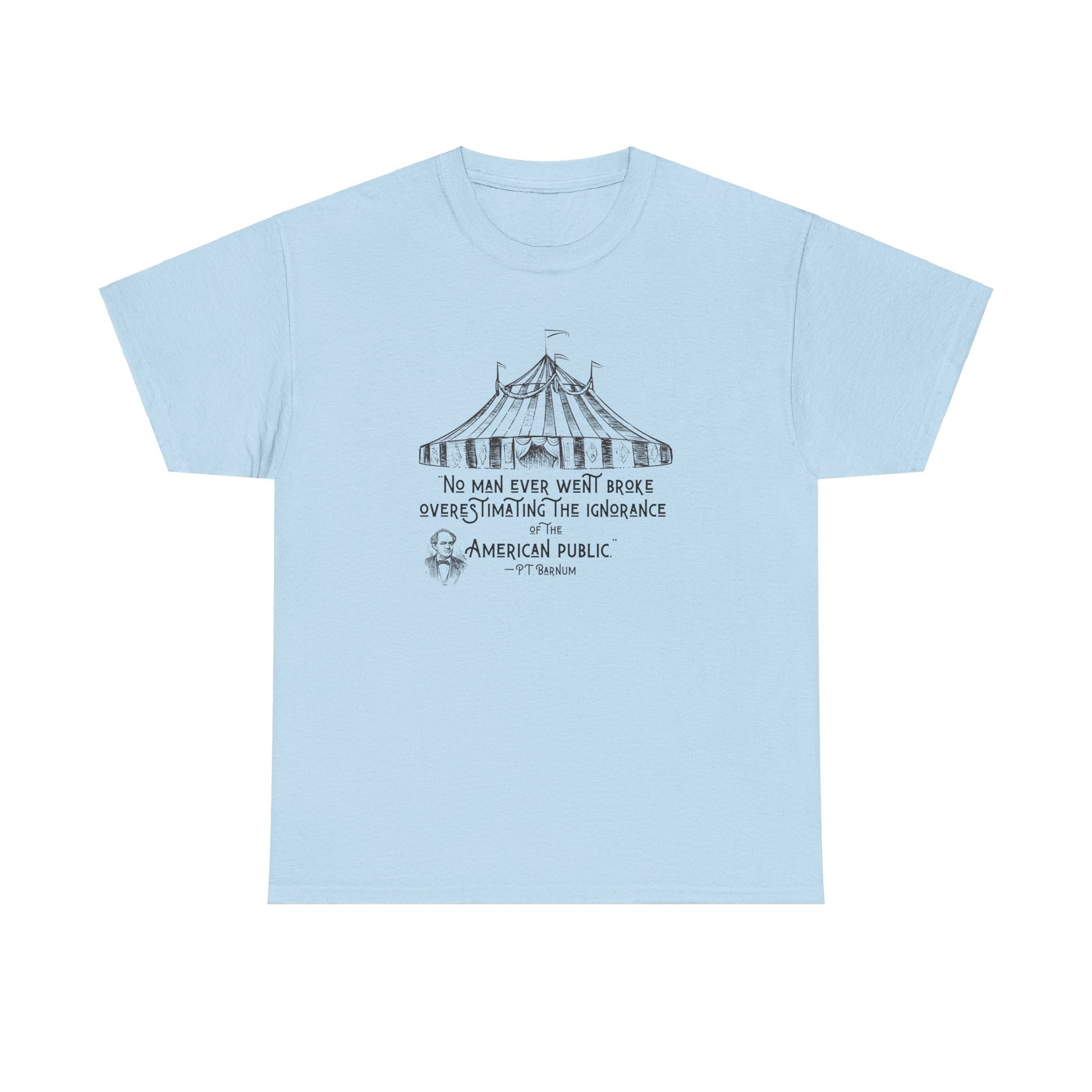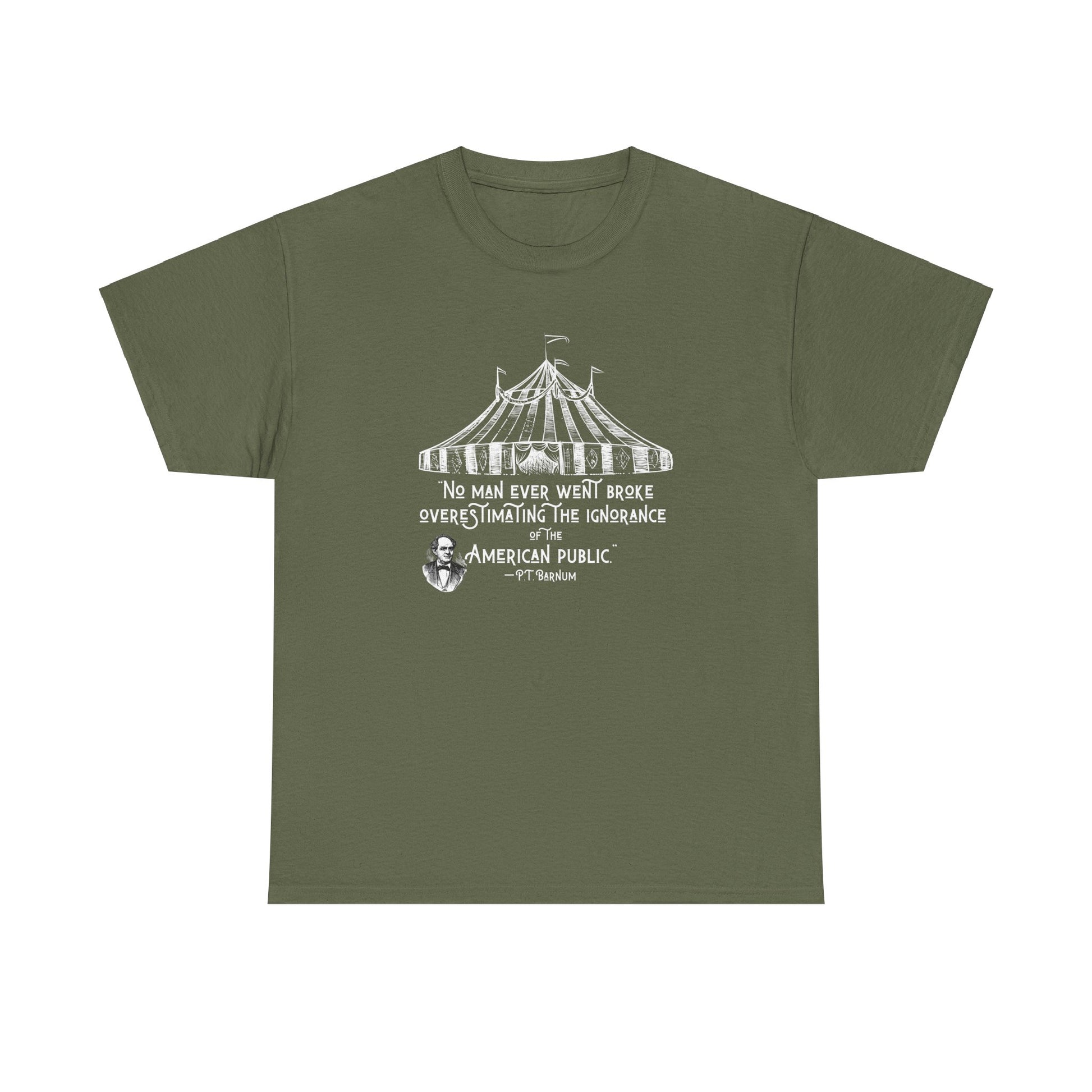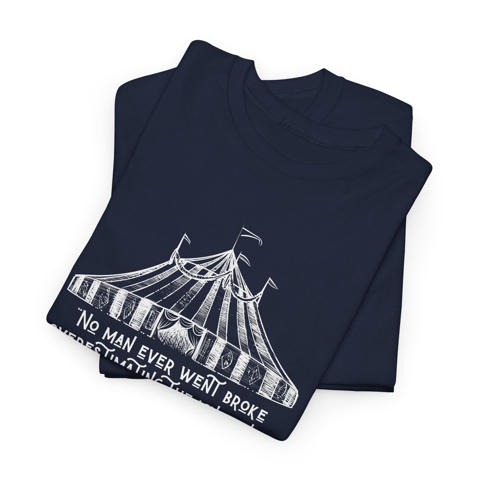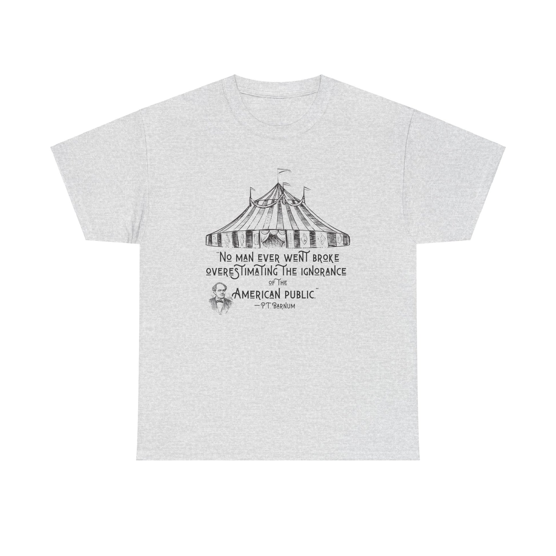 No Man Ever Went Broke Underestimating The Intelligence of the American Public, Humorous T-Shirt P.T. Barnum Quote
