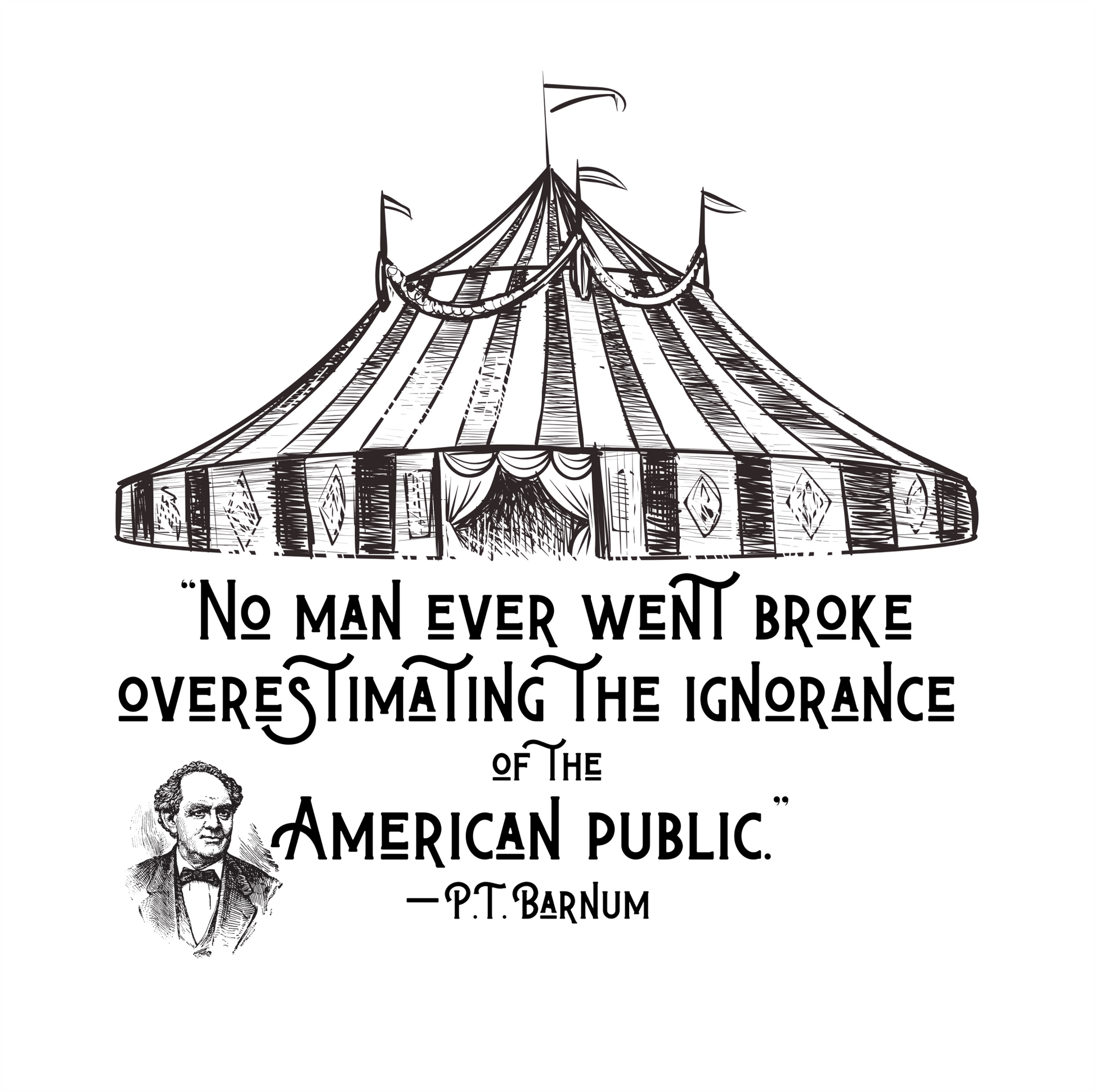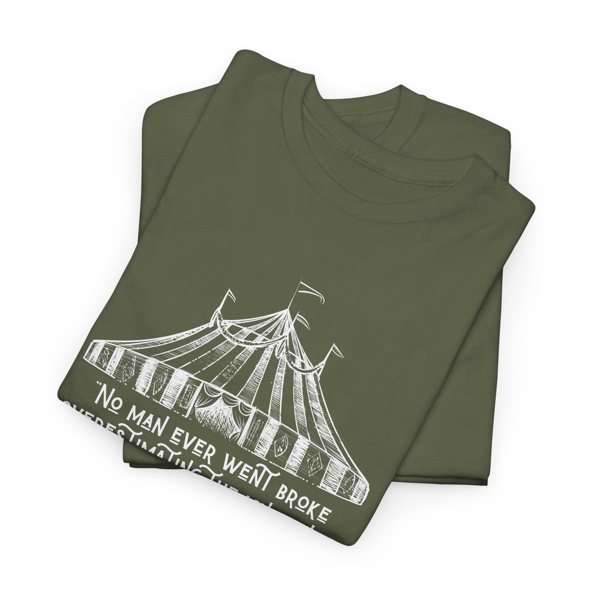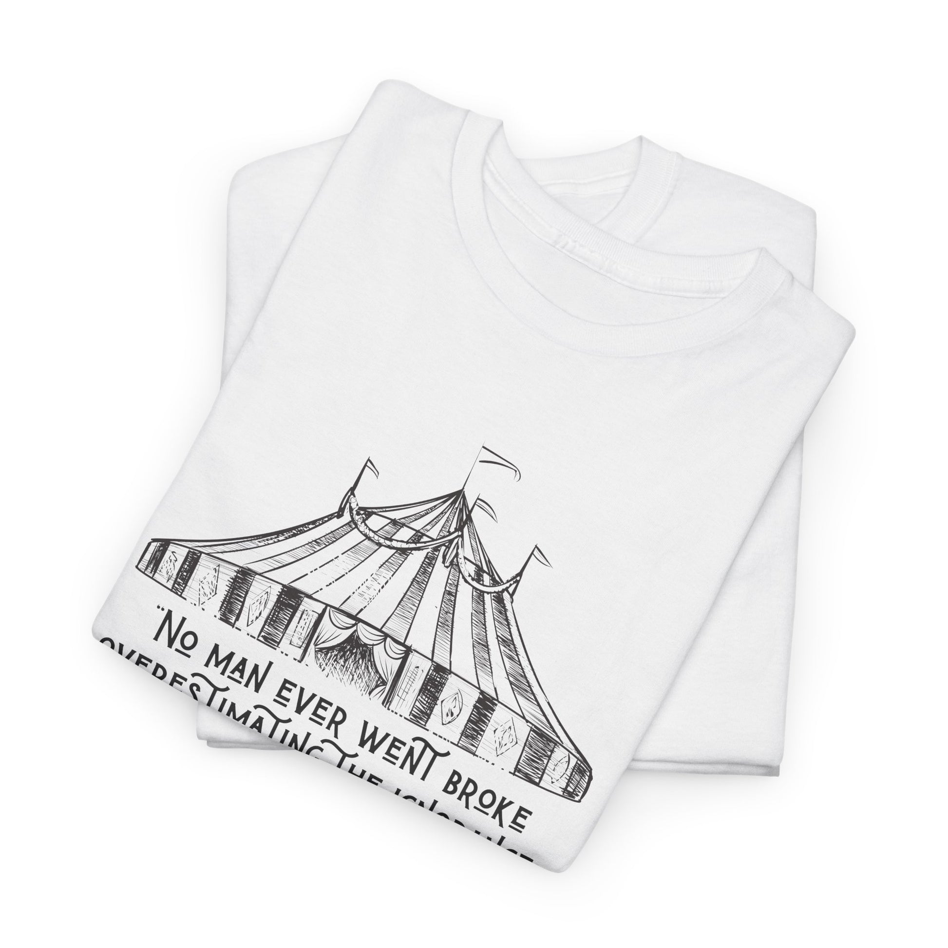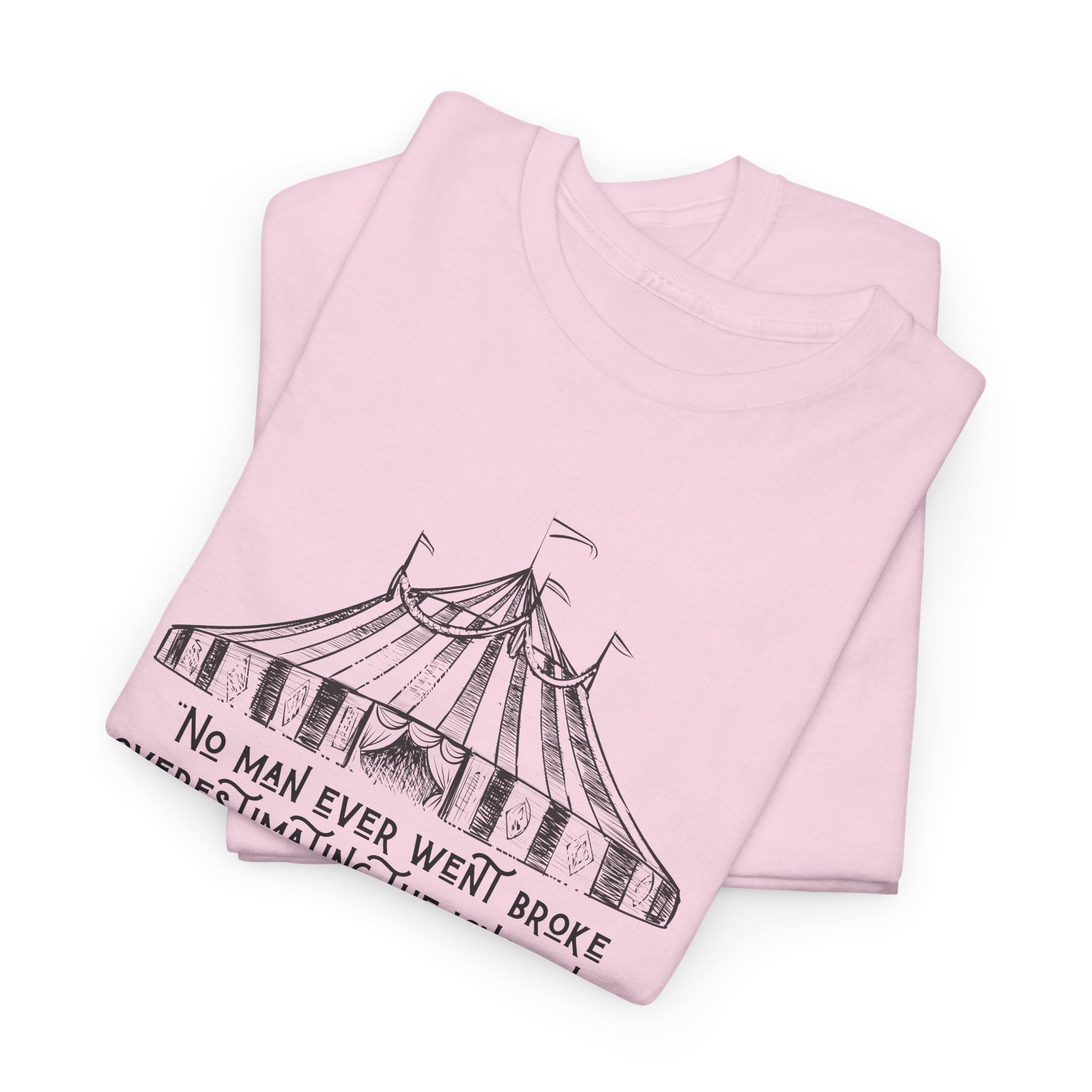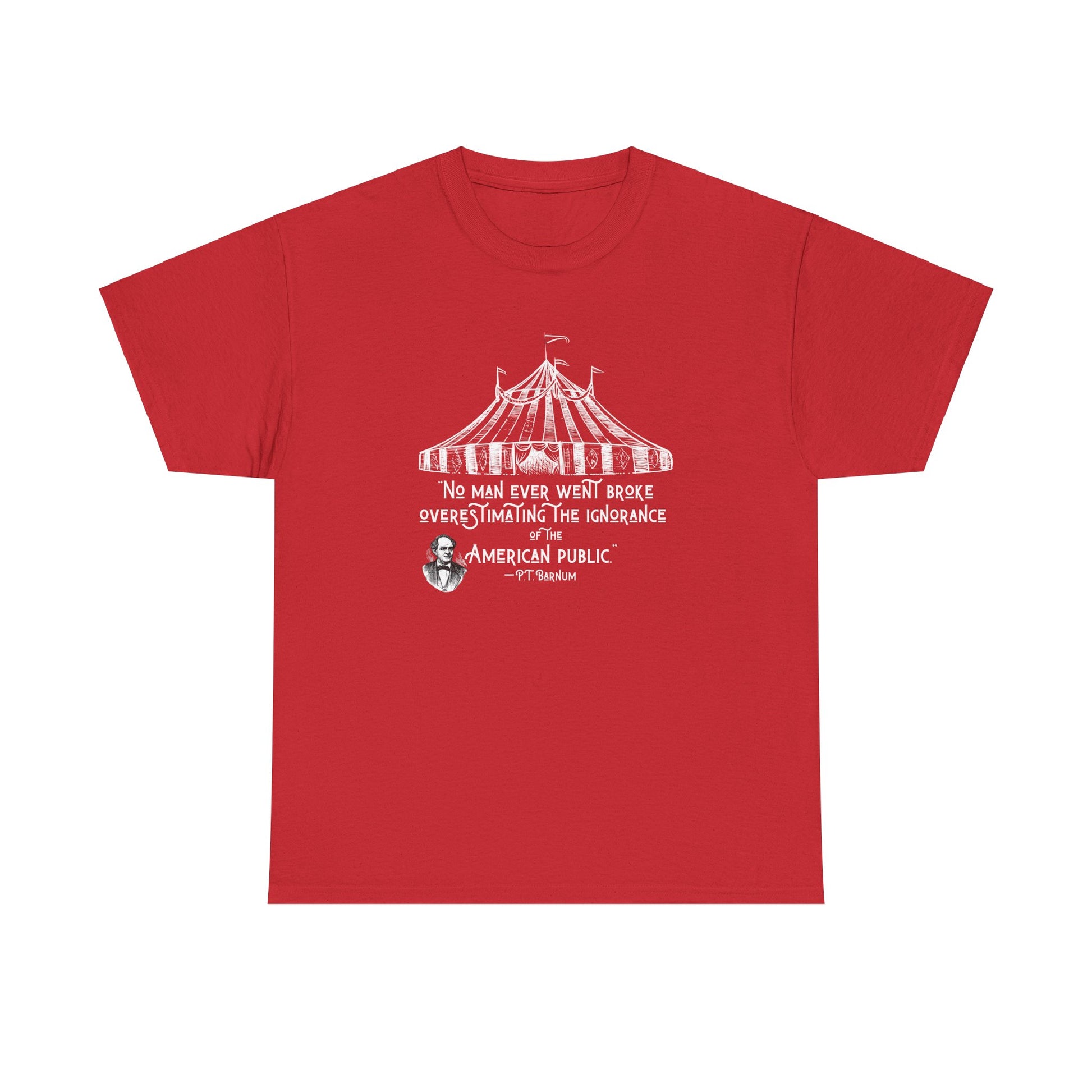 No Man Ever Went Broke Underestimating The Intelligence of the American Public, Humorous T-Shirt P.T. Barnum Quote