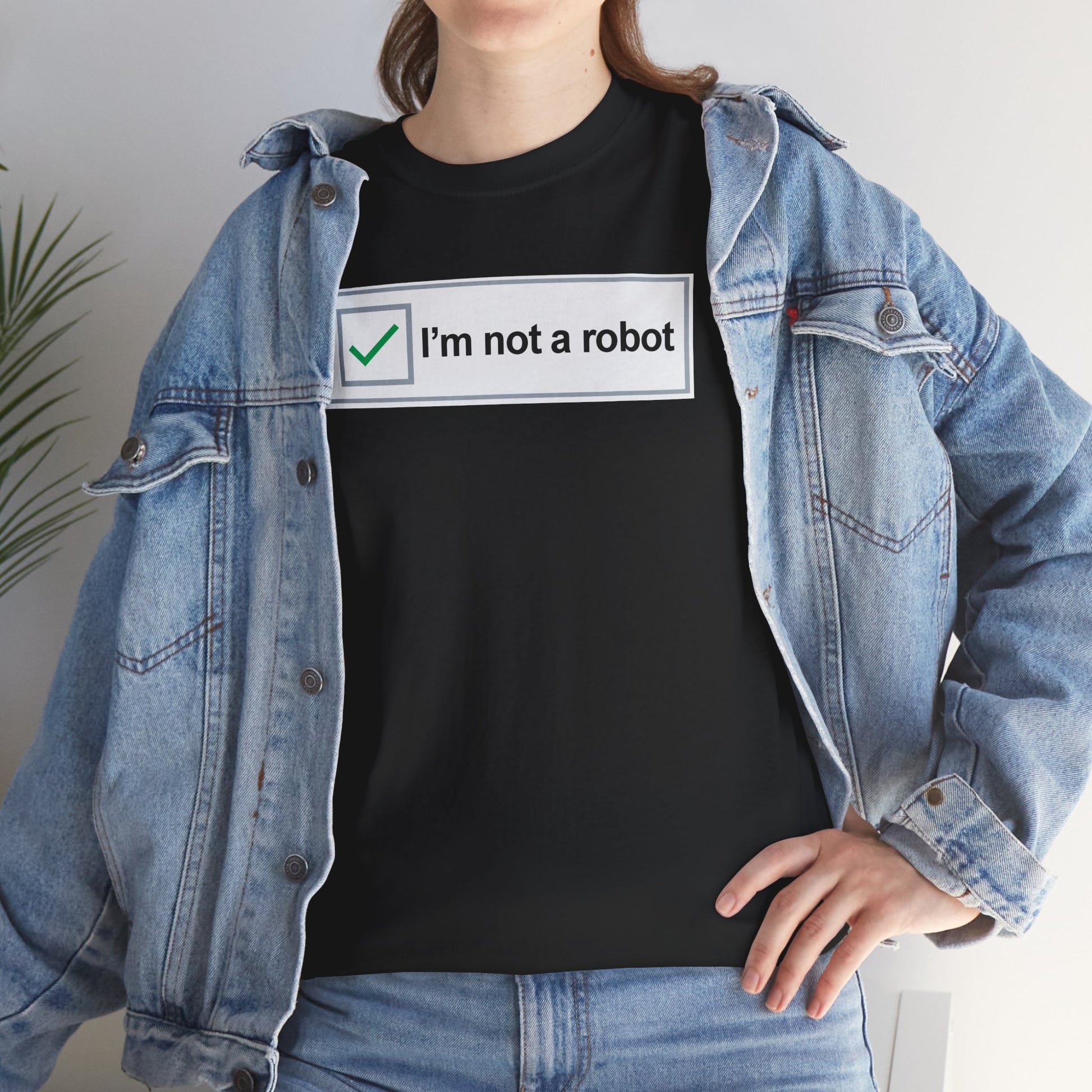 I'm not a Robot CAPCHA Parody Tee, Computer Nerd Humor, I Think, Therefore I am, Humorous Geek T-Shirt