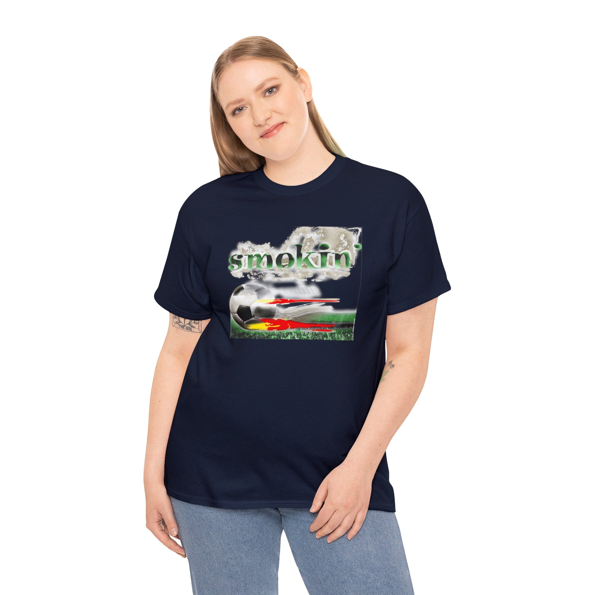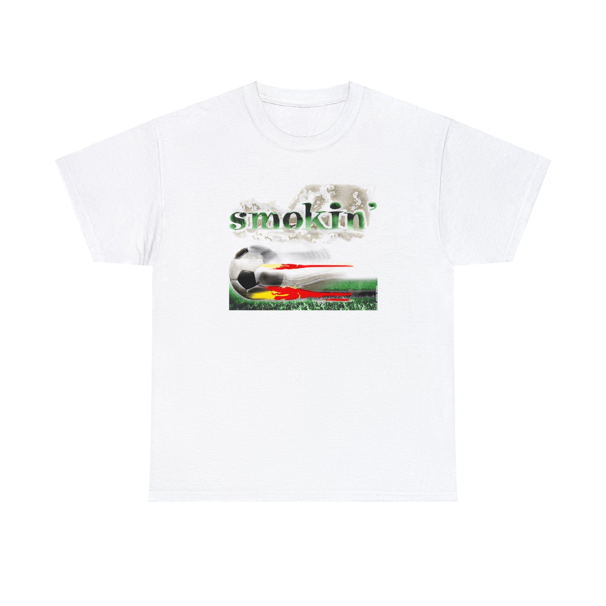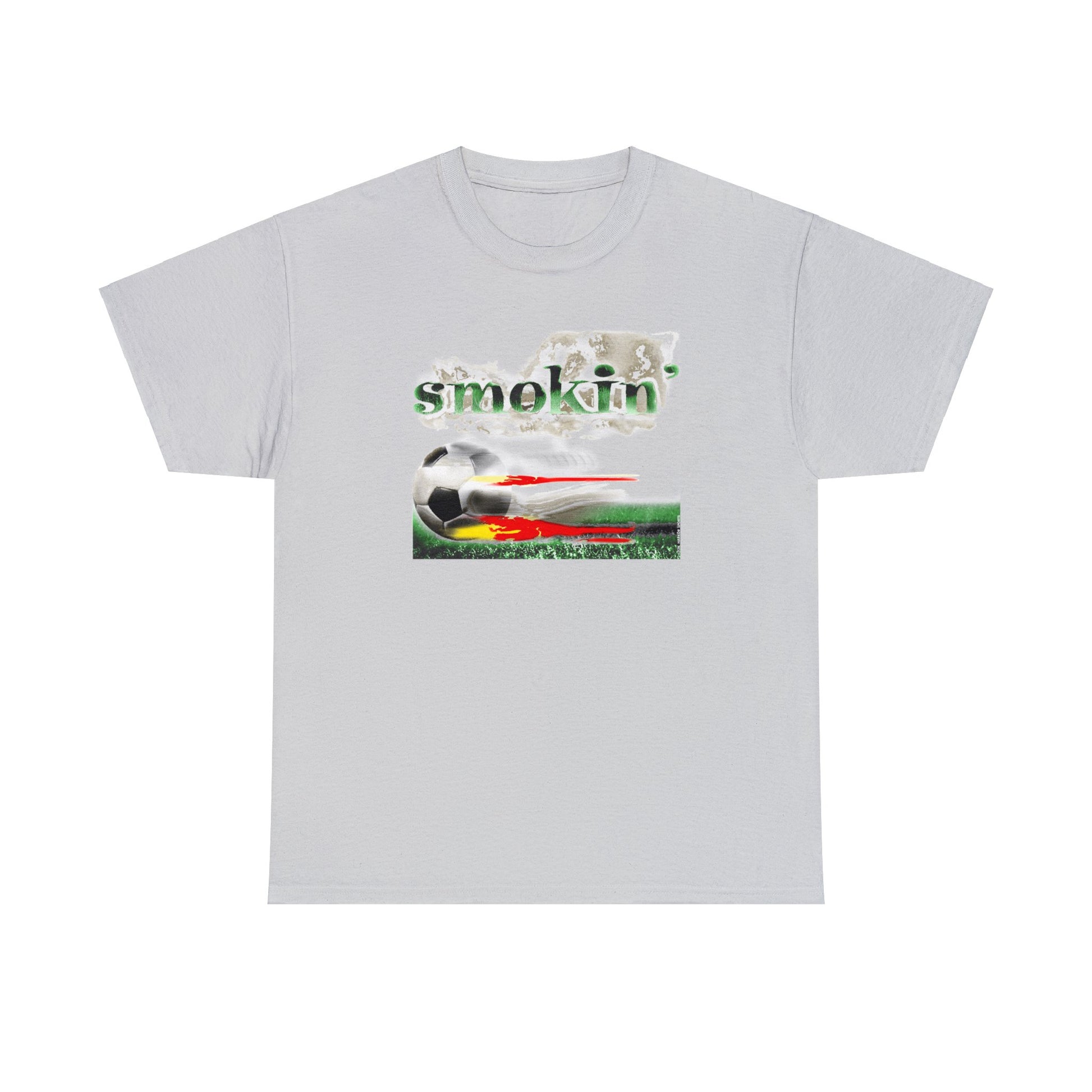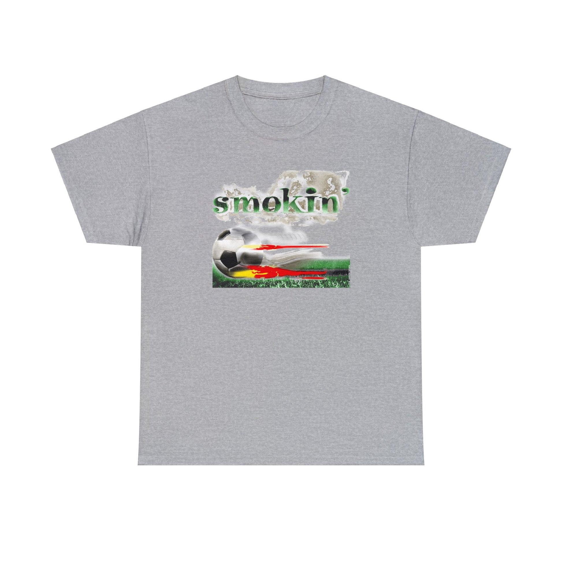 Smokin' Funny Soccer T-Shirt, Unisex Heavy Cotton Tee, Soccer Ball Flaming, Soccer smokin' hot, fast Soccer ball, burning Grass