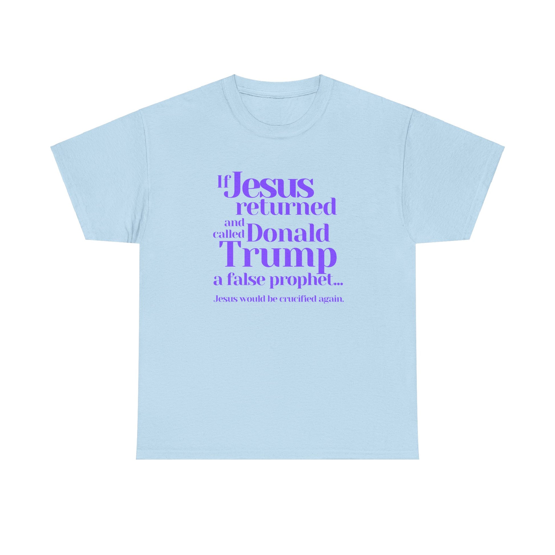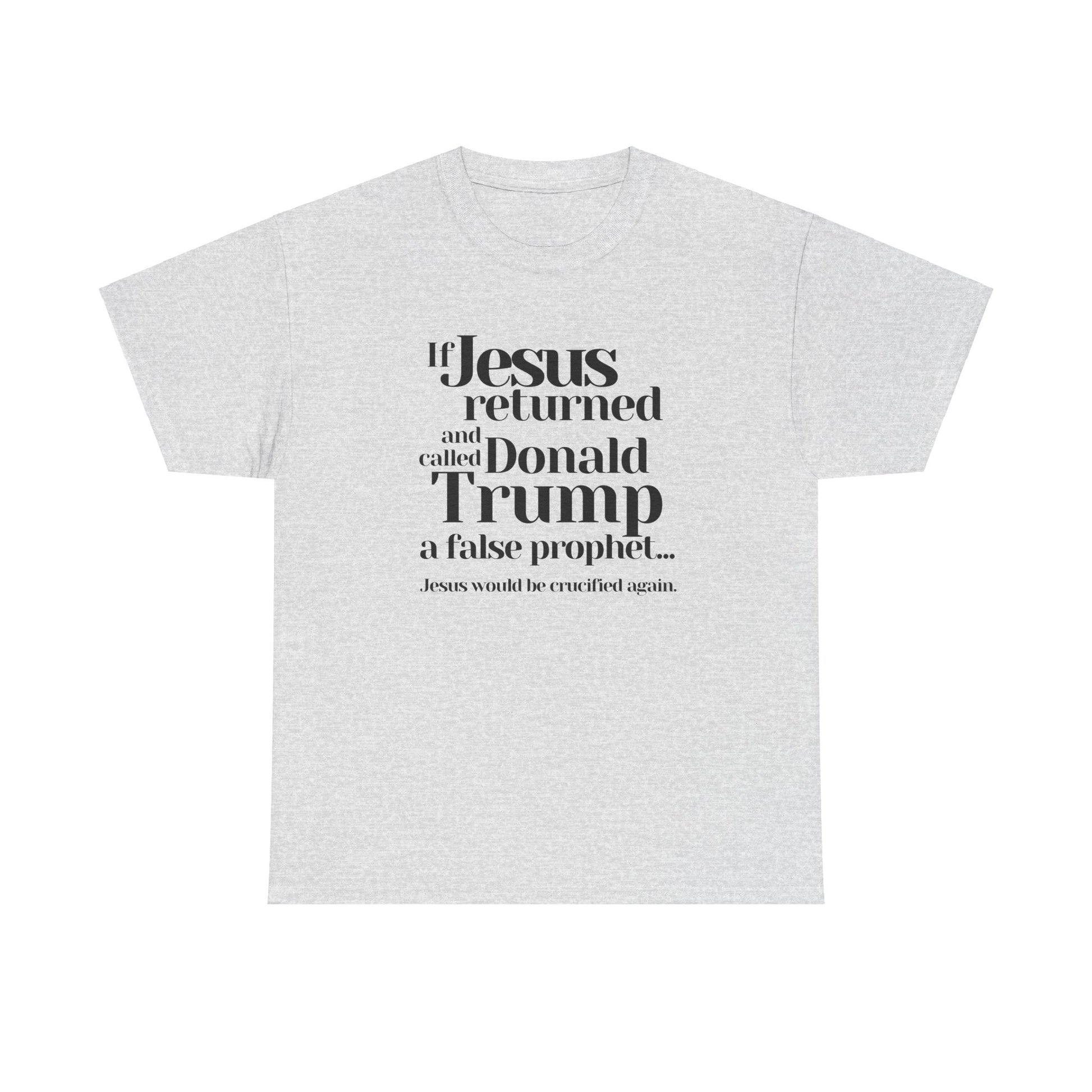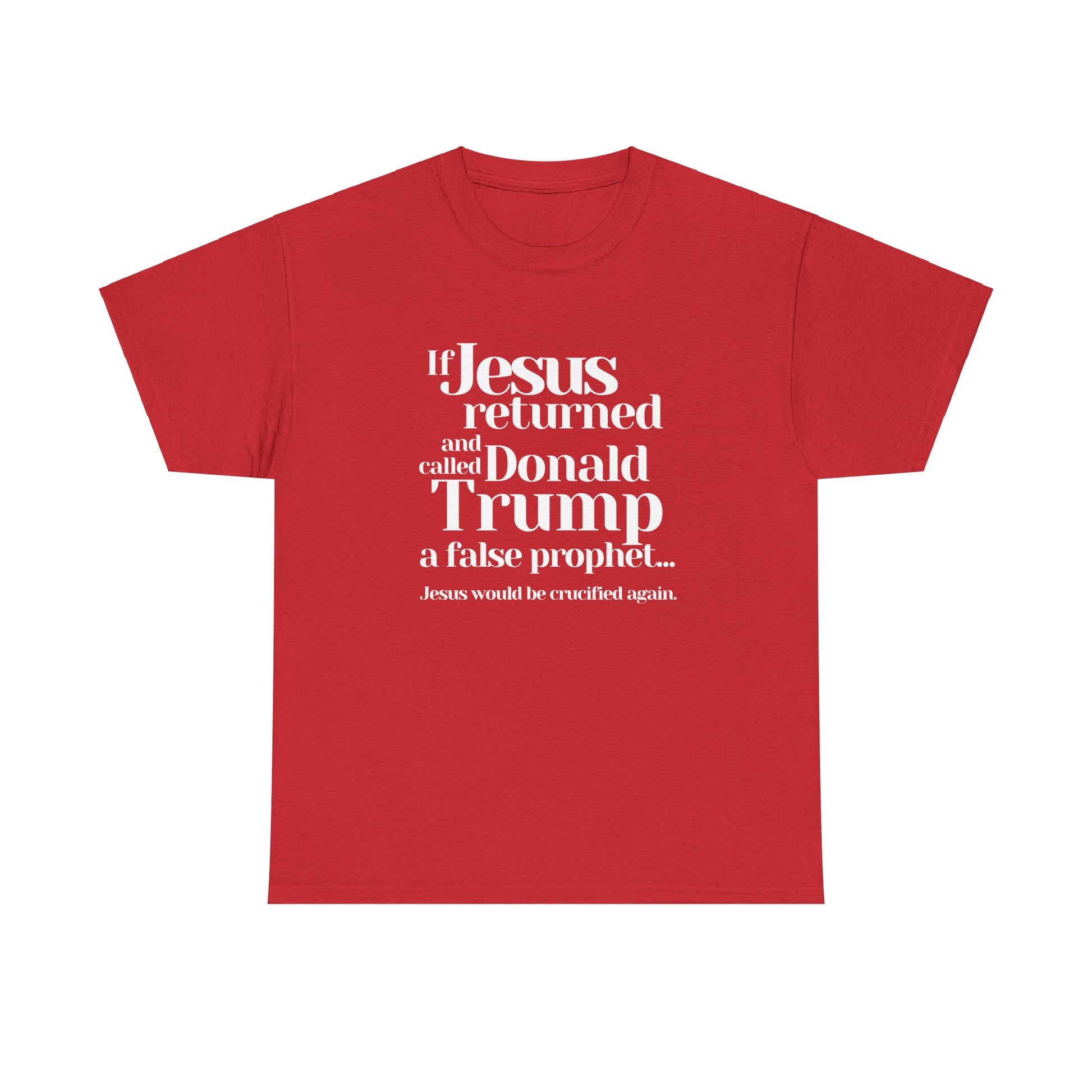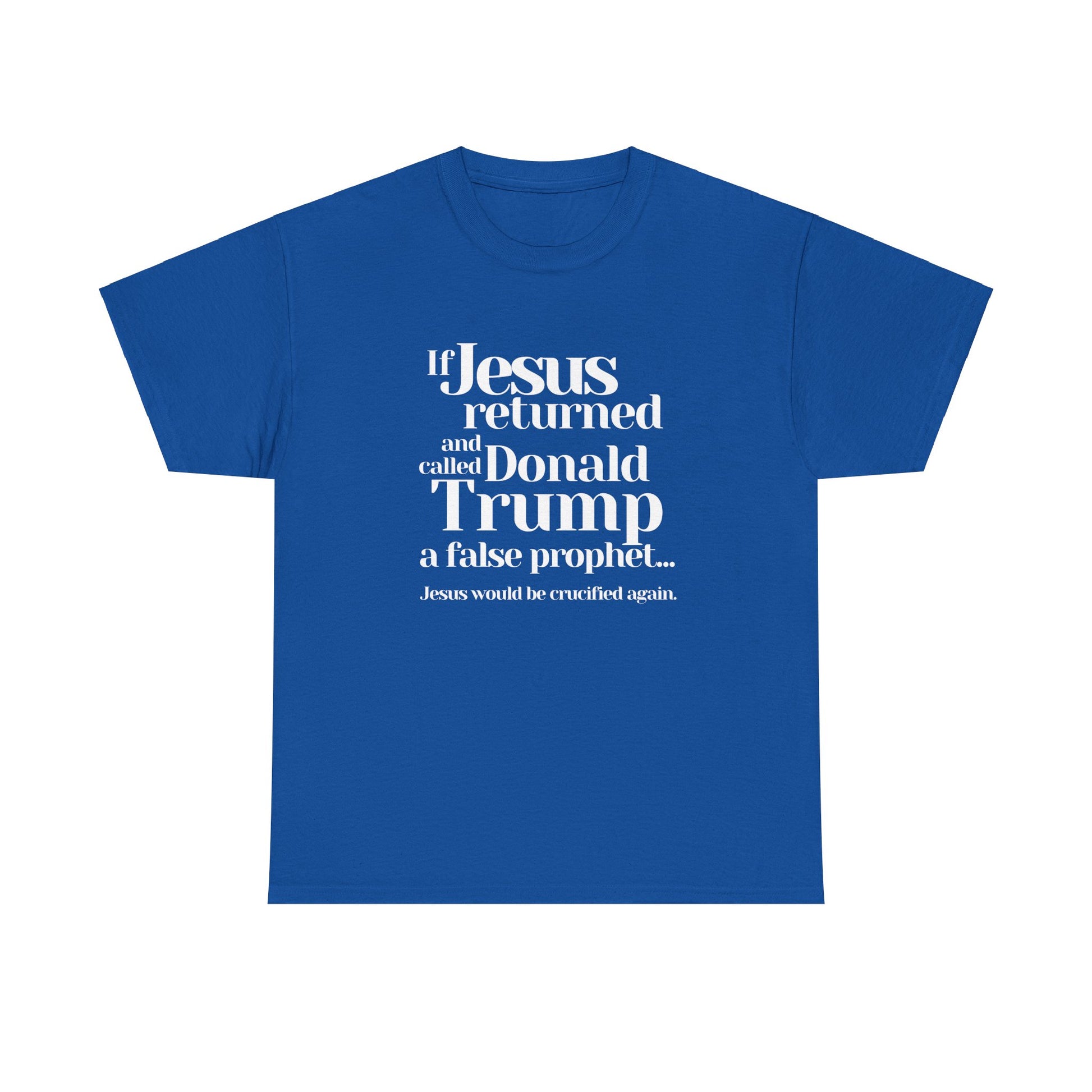 Trump Religions Parody T-Shirt, If Jesus Returned, Called Donald Trump a False Prophet, Jesus Would Be Crucified Again.