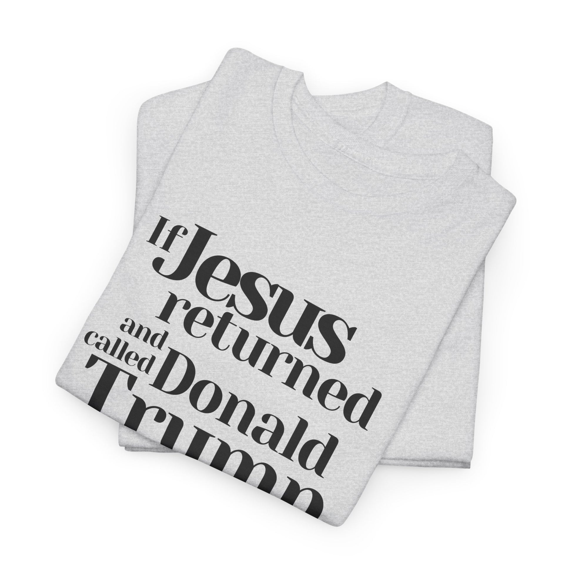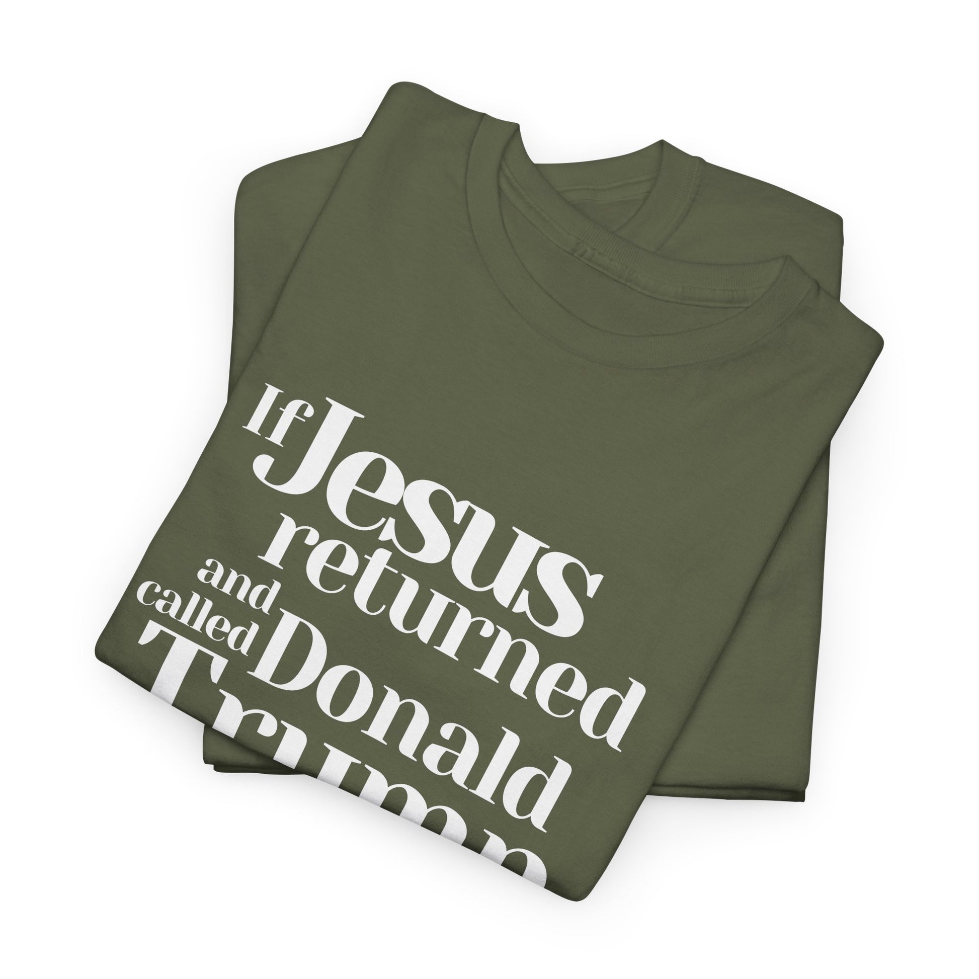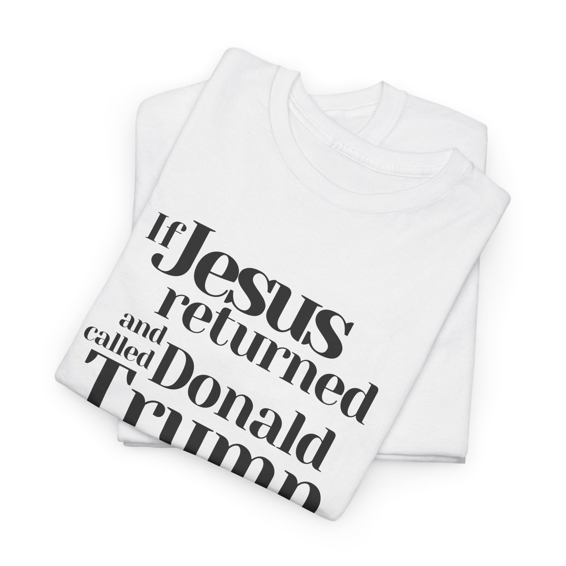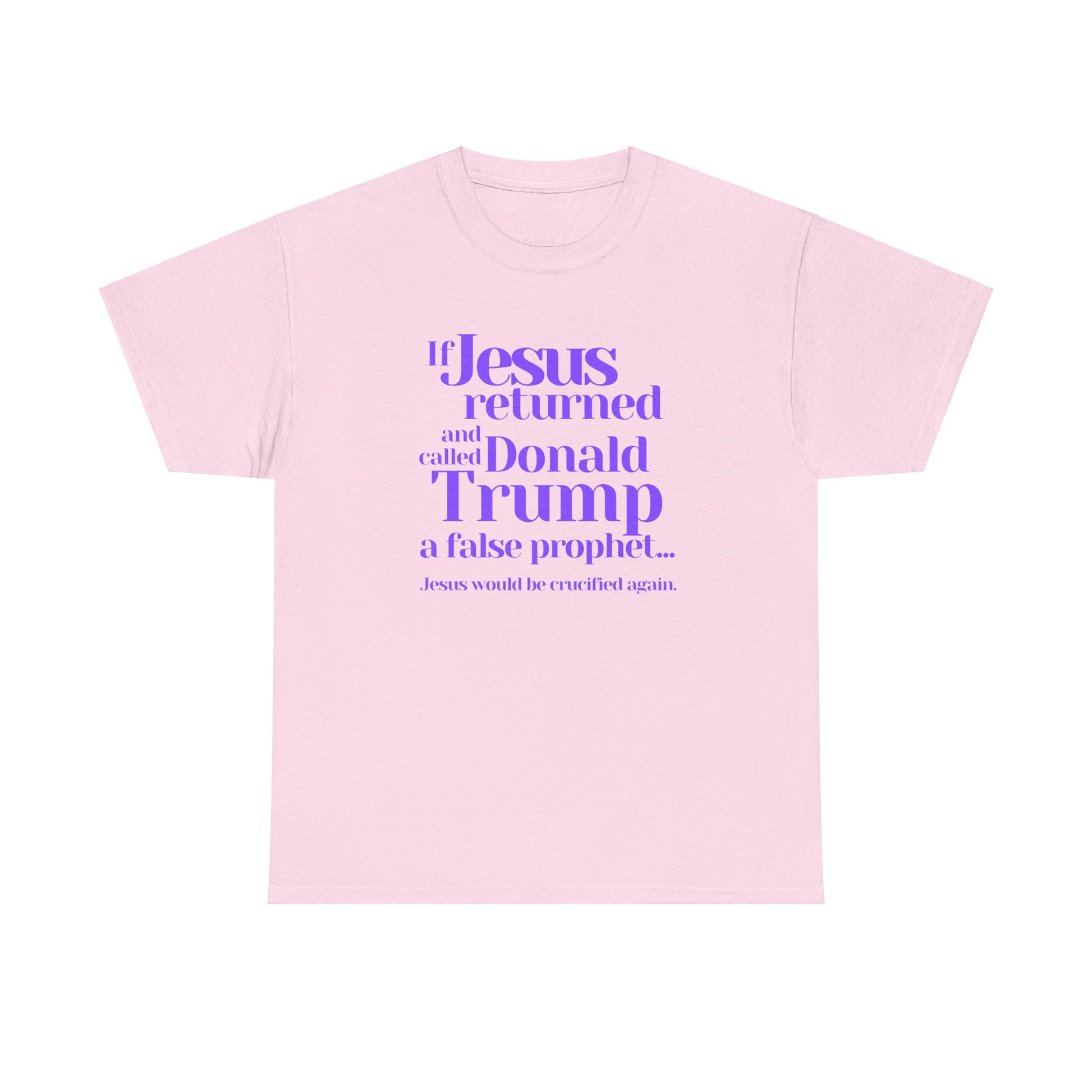 Trump Religions Parody T-Shirt, If Jesus Returned, Called Donald Trump a False Prophet, Jesus Would Be Crucified Again.