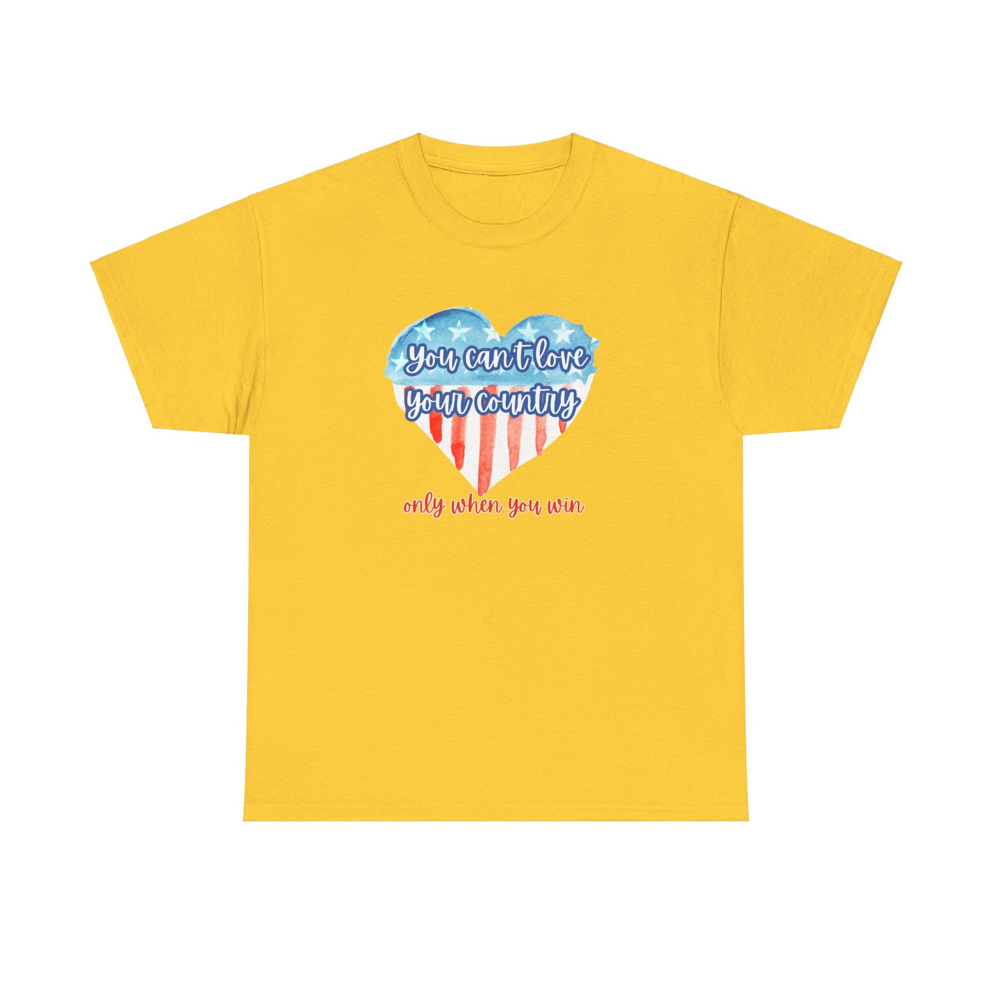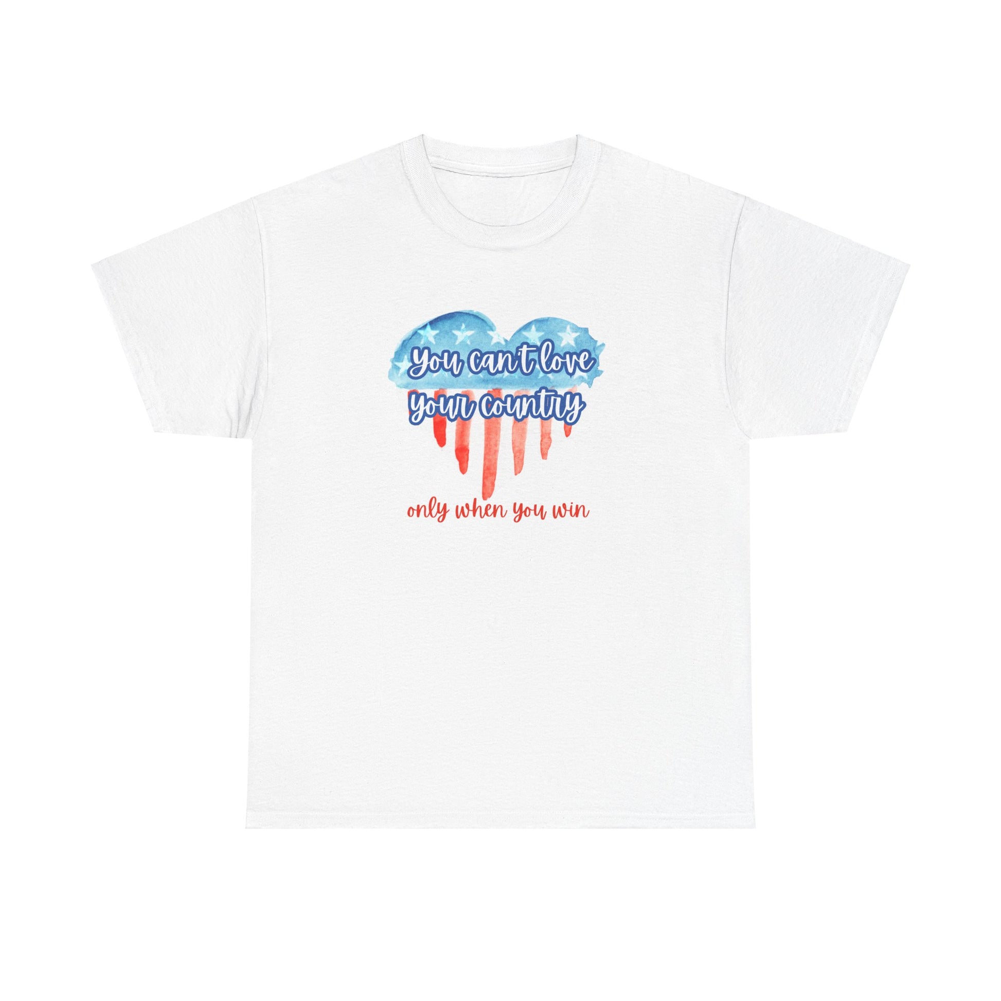 You can't love your country only when you win t-shirt, positive pro Biden, anti Trump, Never Trumper, T-shirt, pro democracy, heart flag