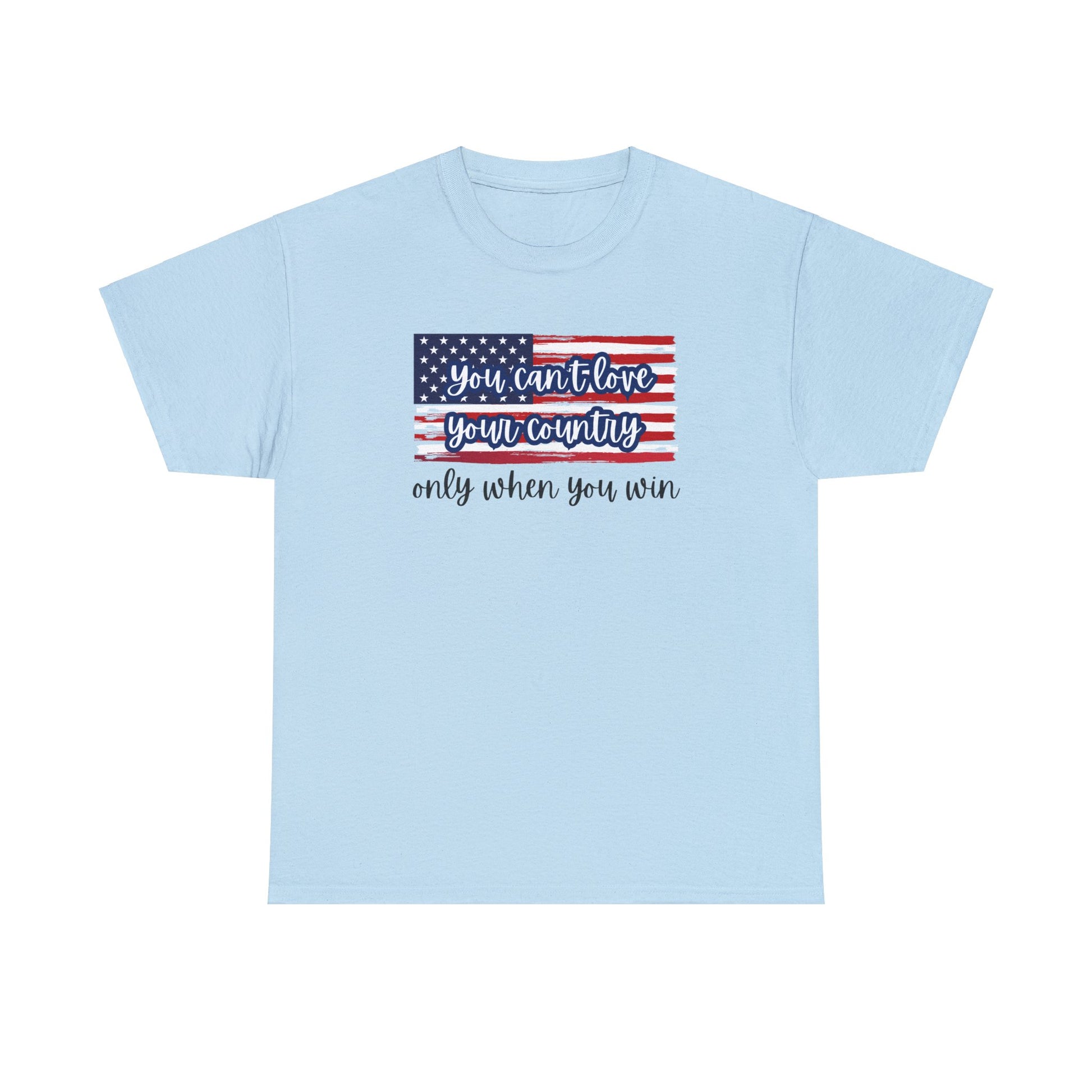 You can't love your country only when you win t-shirt, pro truth, democracy and democratic ideals, American Flag waving t-shirt, America Tee